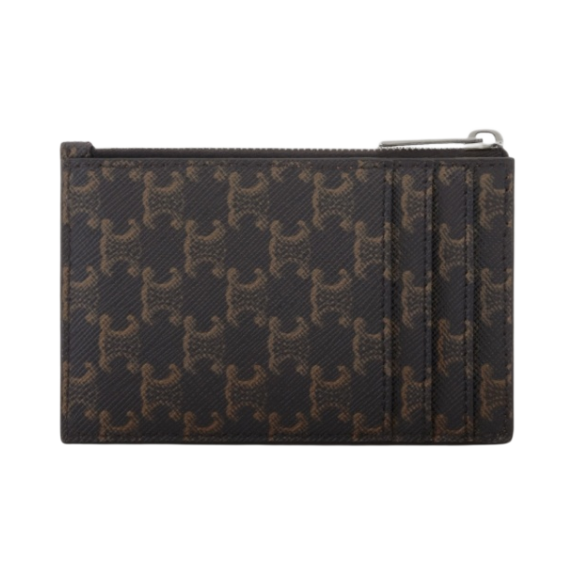 셀린느 지퍼 카드 홀더 트리옹프 캔버스 램스킨 탄
