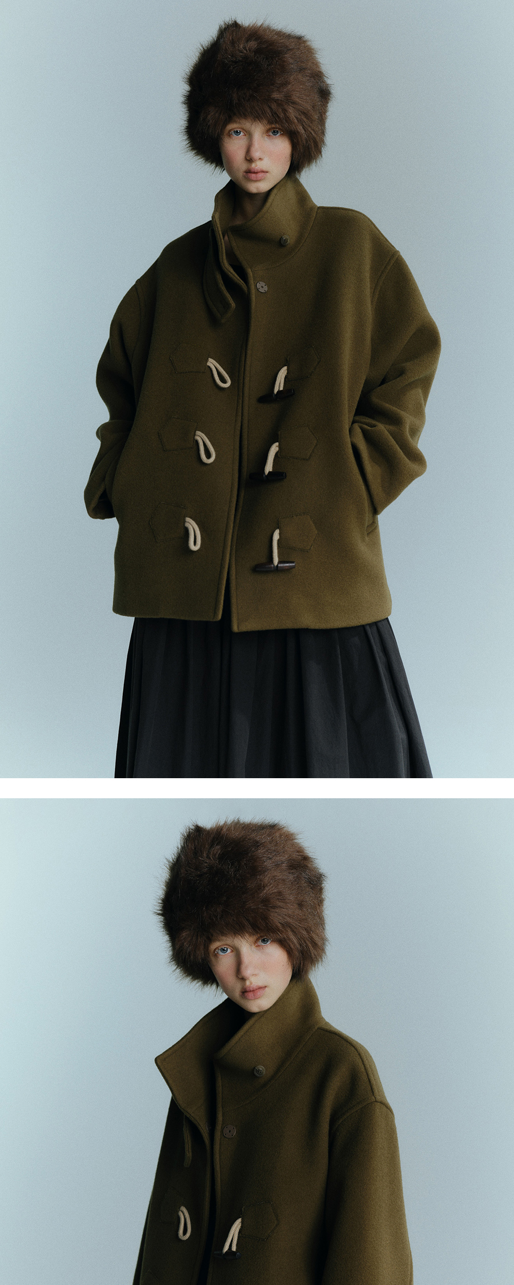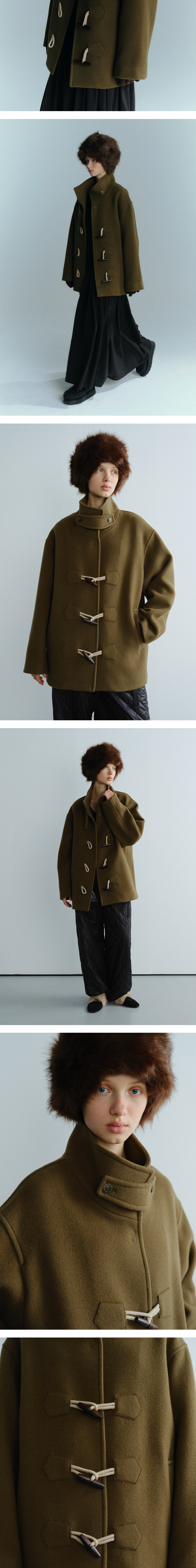 - 엔오르 시그니처 아이템을 재해석한 하프 울 더플코트입니다. - 여유 있는 오버사이즈 실루엣으로 다양한 이너와 레이어링이 가능하며, 전체 안감 처리로 부드럽고 편안한 착용감을 제공합니다. - 넥 부분의 비조 장식으로 하이넥 스타일 연출이 가능합니다. - 전면 특허받은 엔오르만의 토글 버튼과 수입 스냅 버튼 클로저로 편안하면서 고급스럽게 클로징 할 수 있습니다. - 2개의 전면 포켓과 포켓 내부 기모 안감으로 실용성과 보온성을 더했습니다. - WOOL 90% 소재로 겨울에도 따뜻하게 착용할 수 있습니다.
