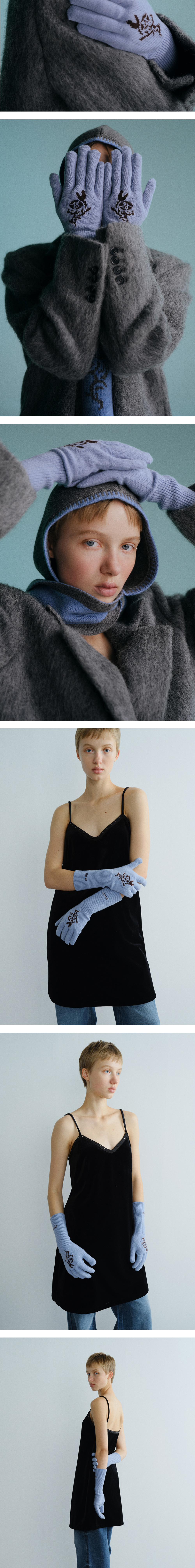 엔오르 우먼 플라워 자카드 글러브스 라이트블루