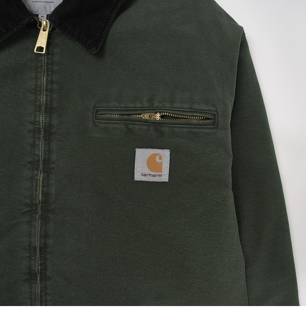 칼하트 WIP OG 디트로이트 자켓 올리브 블랙 스톤 캔버스 - 윈터