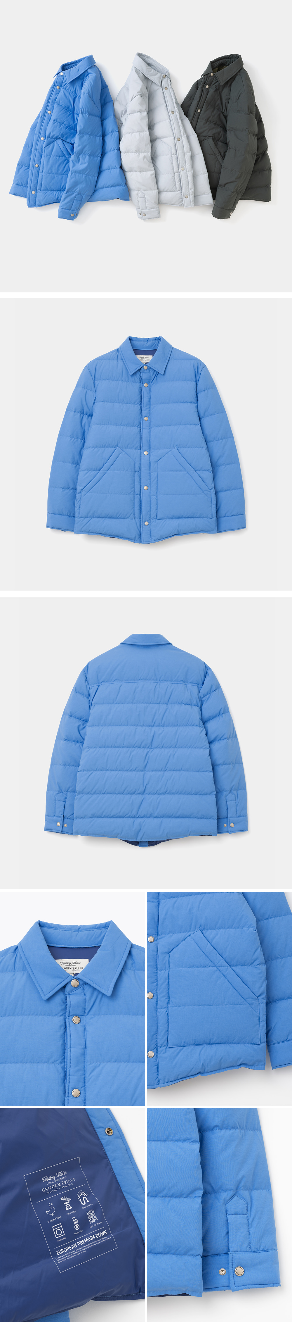 유니폼 브릿지 페더 다운 셔츠 재킷 블루