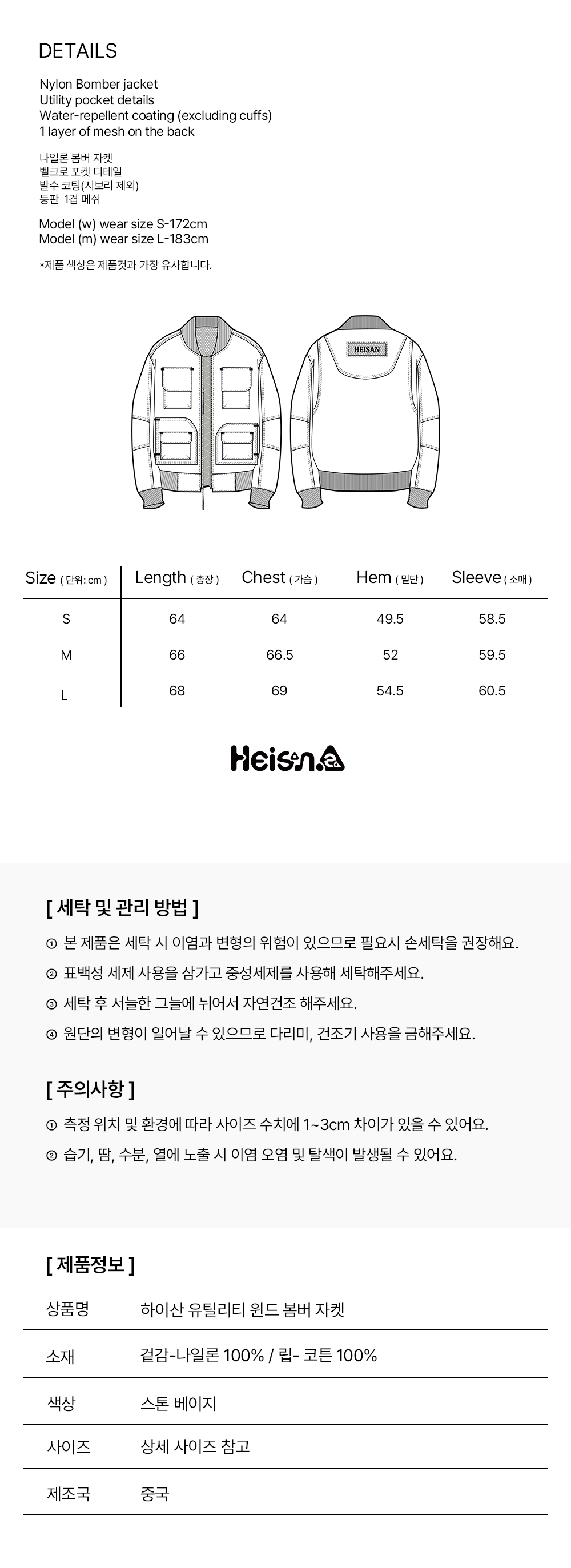 하이산 유틸리티 윈드 봄버 자켓 스톤 베이지