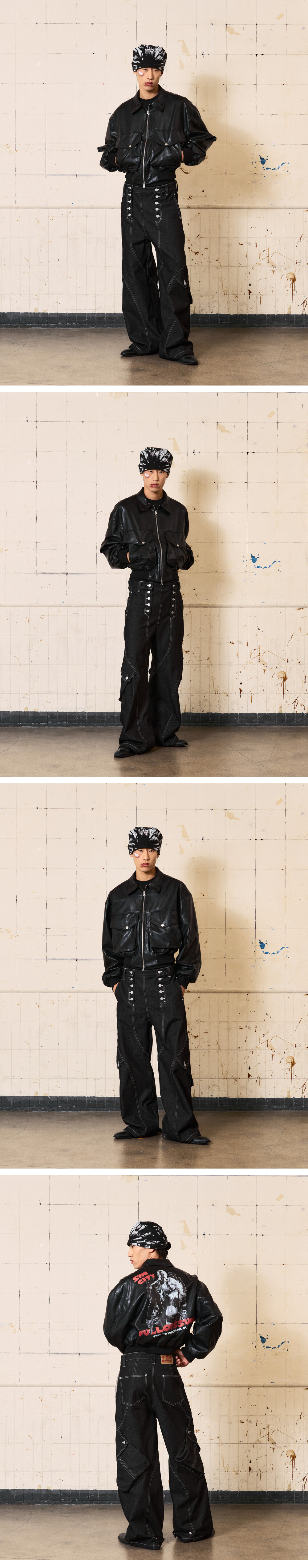 풀오브썬 씬시티 그래픽 레더 자켓블랙