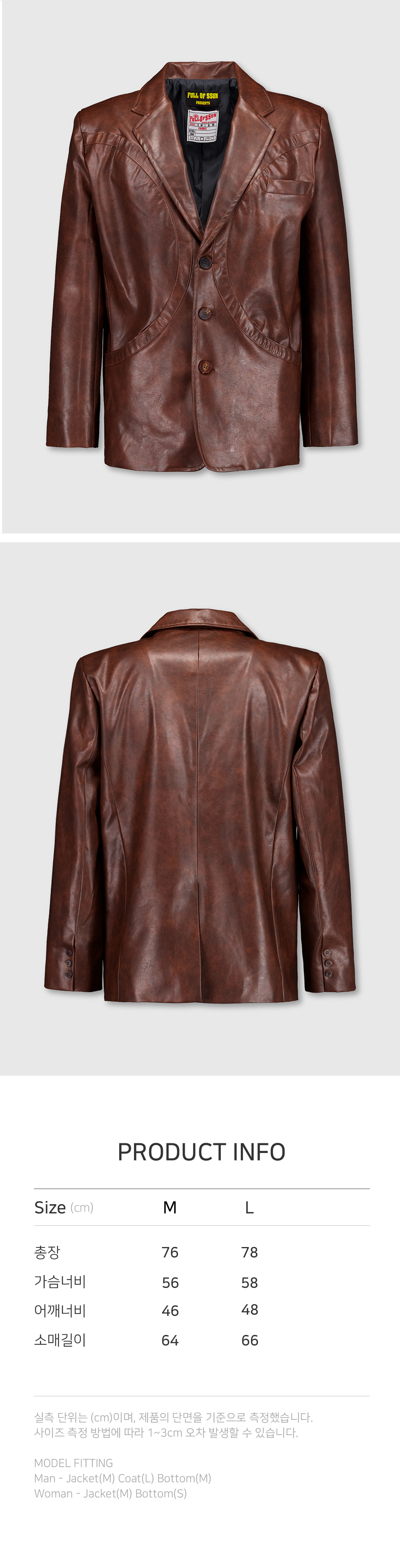 주문제작 상품으로 주문 후 5~7 일 후 순차 발송됩니다. (주말/공휴일 제외) - Faux Leather 원단의 블레이져 - FULLOFSSUN의 시그니쳐 Circle 디테일 (제품 색상은 모델컷이 아닌 제품컷의 색상이 실제색상과 더가깝습니다)