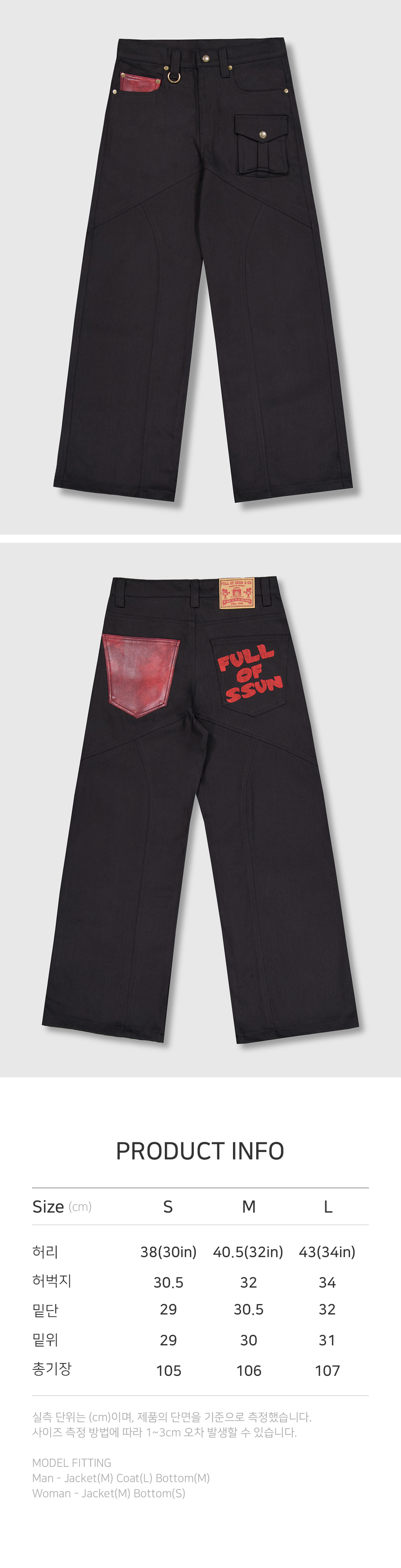 풀오브썬 씬시티 로고 레더 팬츠 데님 블랙