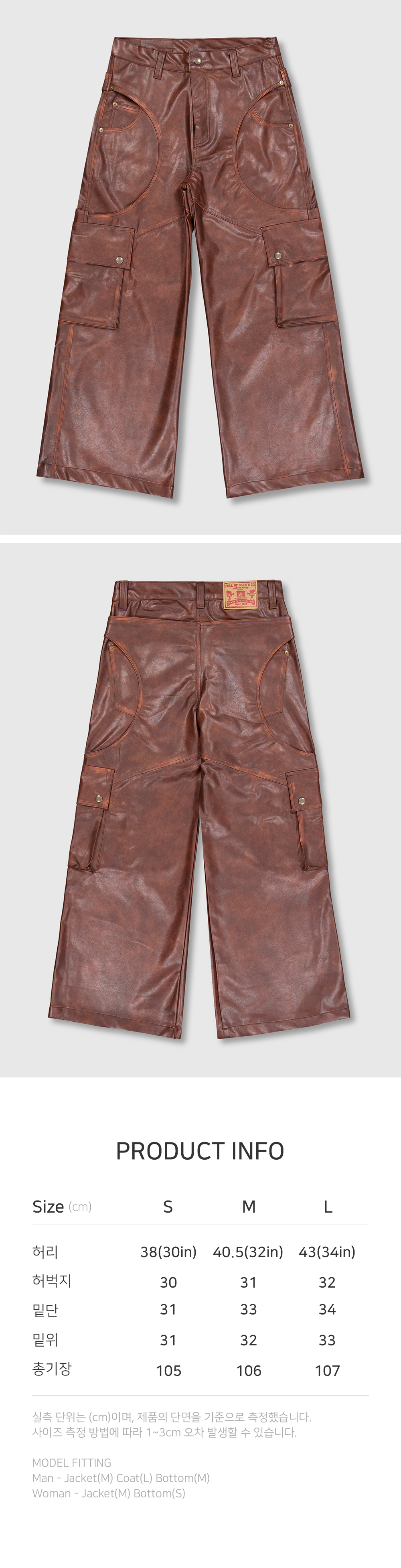 풀오브썬 써클 카고 워싱 레더 팬츠 브라운