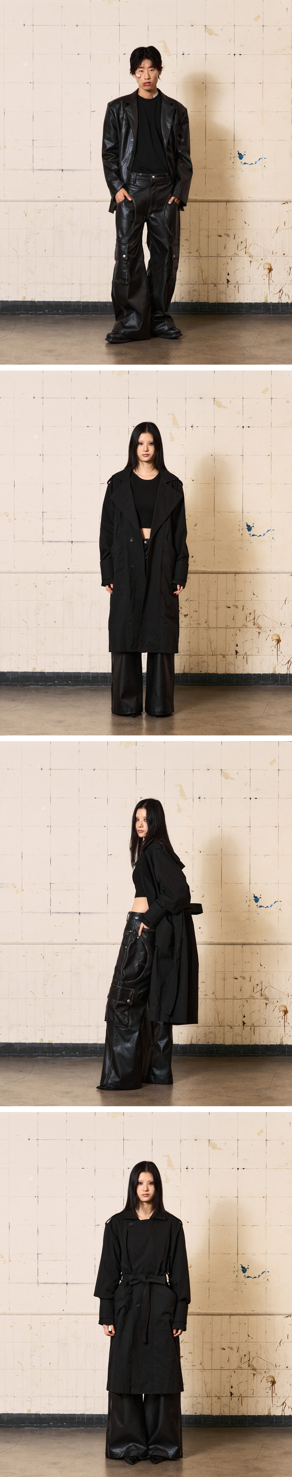 풀오브썬 써클 카고 워싱 레더 팬츠 블랙
