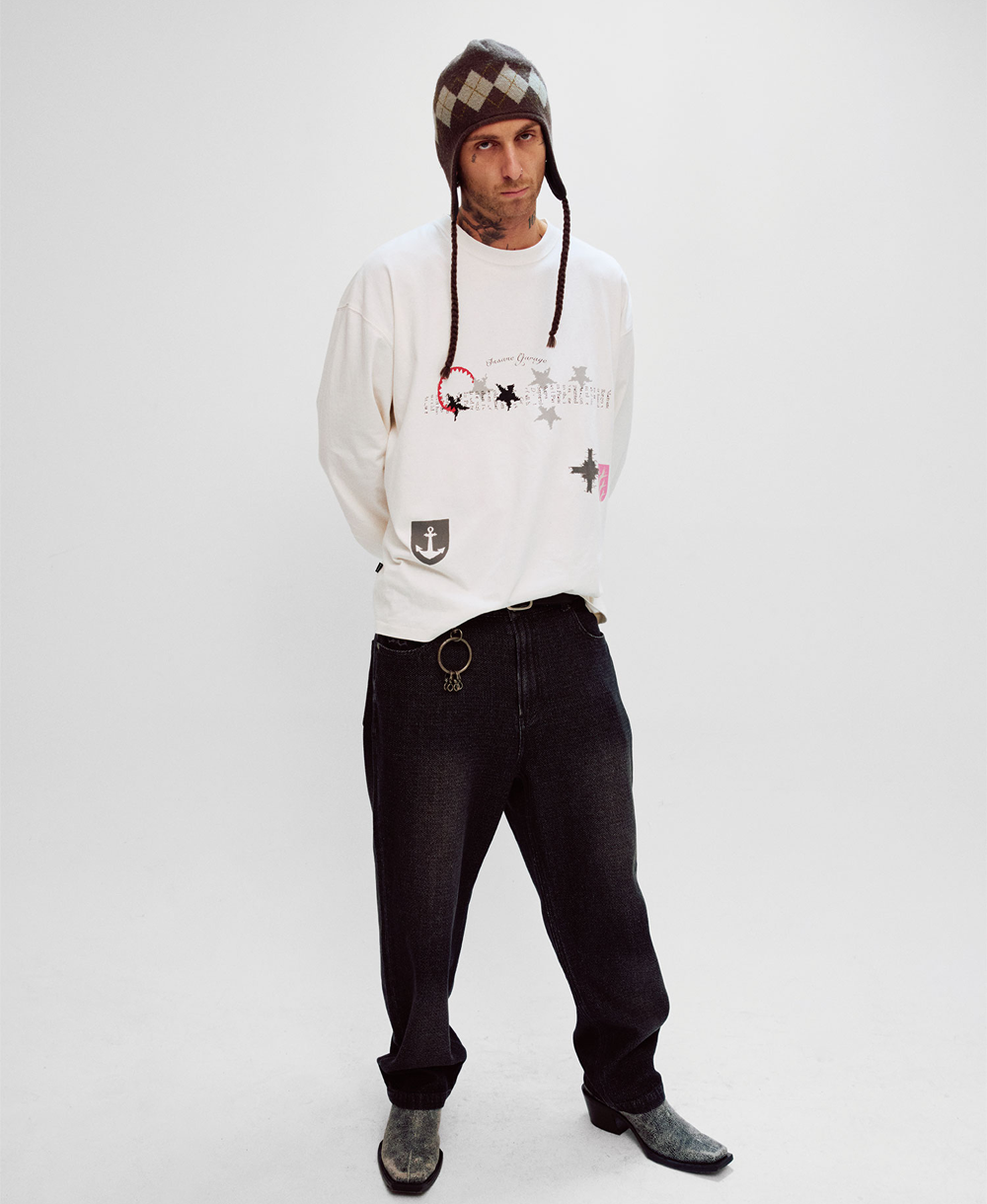 [CONTENT] Cotton 100% * MEASUREMENT MAY VARY +/-5% * COLOR MAY DIFFER DEPENDS ON THE LIGHT AND SCREEN CONDITION [DETAIL] • YARN-DYED FABRIC (DYED IN THE YARN STATE BEFORE KNITTING) FOR A SOFTER TOUCH THAN PIGMENT FABRIC • DOUBLE STITCHING AT HEM • INSANE GARAGE ORIGINAL SEASON GRAPHICS ON FRONT AND BACK • BOUND NECKLINE STITCHING FOR A MORE STRUCTURED FIT WITH DISTRESSED DETAILS FOR A VINTAGE LOOK • SLIGHTLY CROPPED LENGTH [CARE] -케어라벨 참고