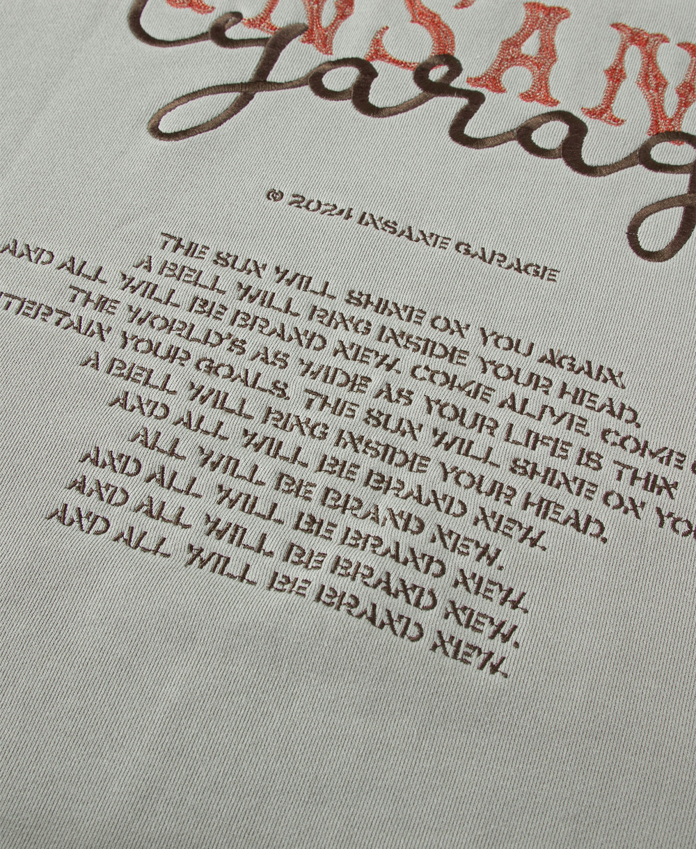 [CONTENT] COTTON 100% * MEASUREMENT MAY VARY +/-5% * COLOR MAY DIFFER DEPENDS ON THE LIGHT AND SCREEN CONDITION [DETAIL] - 375G COTTON FABRIC USED FOR BETTER COMFORT AND DURABILITY - TUMBLE FINISHED TO ENSURE POLISHED AND REFINED APPEARANCE - FEATURES IN NEW SEASON GRAPHICS ON THE BACK BODY - UTILIZED SATIN EMBROIDERED DETAIL AND CHAIN STITCH GRAPHIC ON THE BACK [CARE] - WASH DARK COLOR SEPERATELY - MACHINE WASH COLD - DO NOT BLEACH - 케어라벨 참고