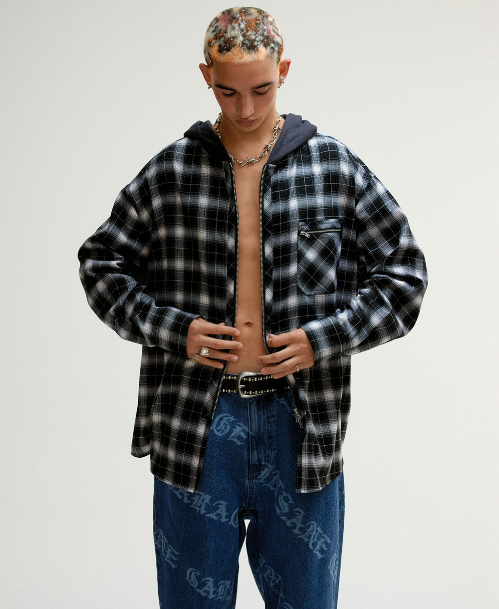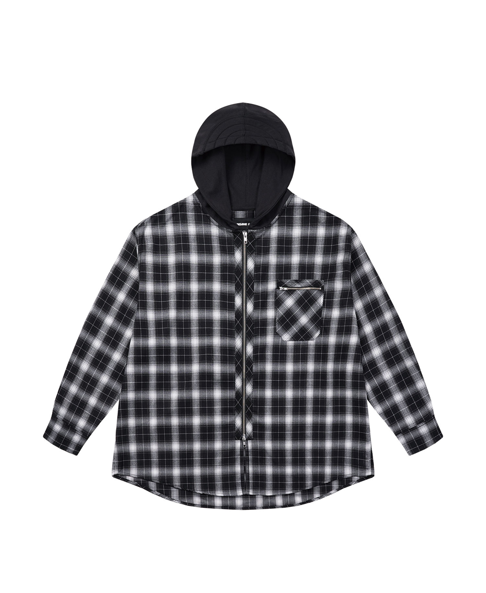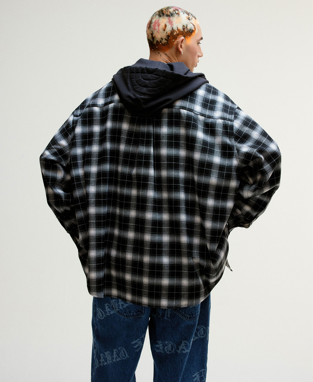 INSANE GARAGE Insane Flannel Padded Hoodie Shirt_Black