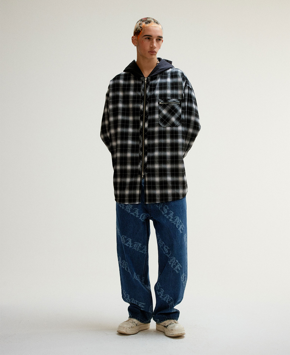 [CONTENT] BODY: POLYESTER 77.9% / VISCOSE 21.2% / POLYURETHANE 0.9% HOODIE: COTTON 100% * MEASUREMENT MAY VARY +/-5% * COLOR MAY DIFFER DEPENDS ON THE LIGHT AND SCREEN CONDITION [DETAIL] - TUMBLE WASHED FINISH FOR ICONIC VINTAGE LOOK - INSANE LOGO EMBROIDERED ON FRONT ZIP POCKET - SIGNITURE PADDED HOODIE DETAIL WITH FLANNEL CHECK SHIRT BODY - UTILIZED YKK HARWARE FOR IMPROVED DURABILITY [CARE] - 케어라벨 참고