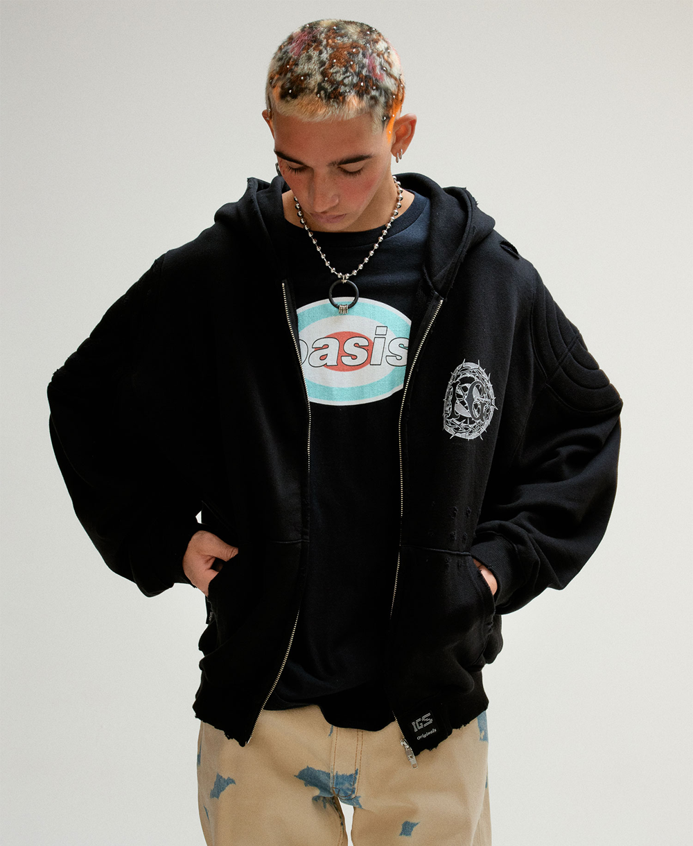 [CONTENT] COTTON 100% * MEASUREMENT MAY VARY +/-5% * COLOR MAY DIFFER DEPENDS ON THE LIGHT AND SCREEN CONDITION [DETAIL] - 470G TUMBLE FINISHED HEAVY DUTY COTTON USED - TUMBLE WASHED FINISH WITH DISTRESSED DETAILS FOR ICONIC VINTAGE LOOK - PADDED SHOULDER CONSTRUCTURE DETAIL - INSANE LOGO GRAPHIC AT THE BACK [CARE] - COLOR BLEEDING WARNING - WASH DARK COLOR SEPERATELY - MACHINE WASH COLD - DO NOT BLEACH - 케어라벨 참고