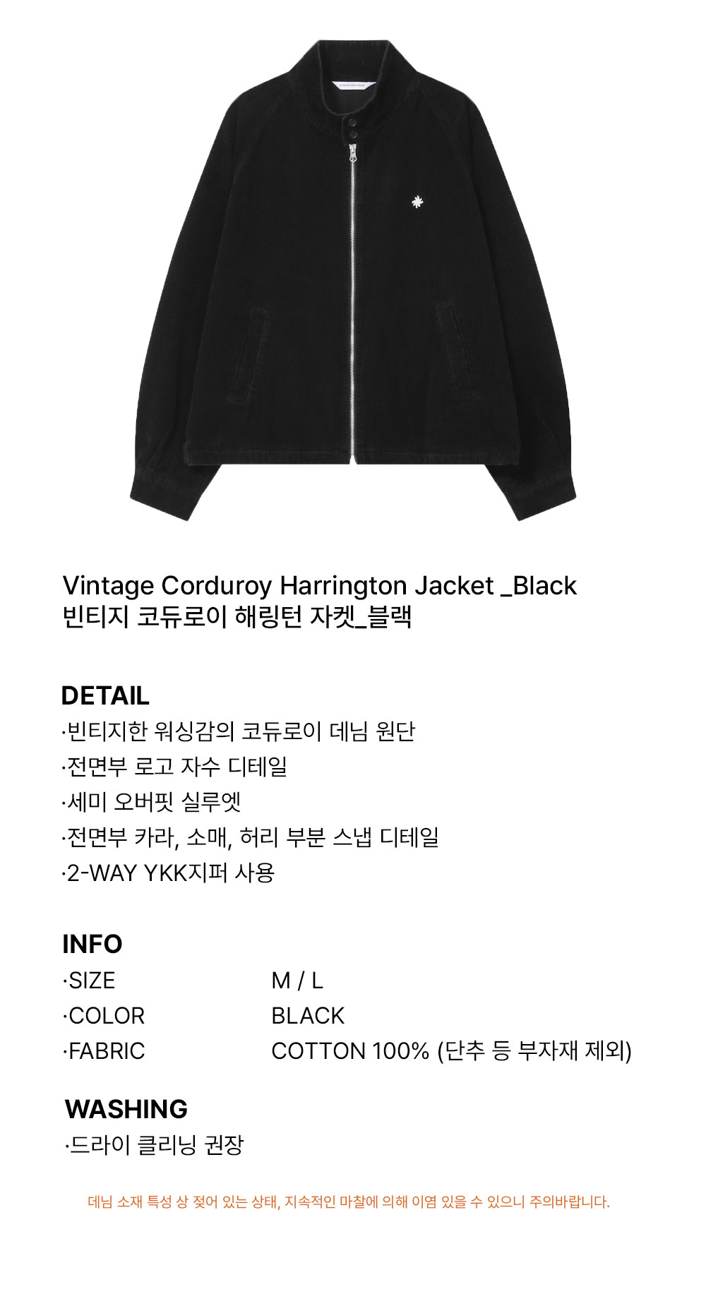 슬로우 레코드 하우스 빈티지 코듀로이 해링턴 자켓 블랙