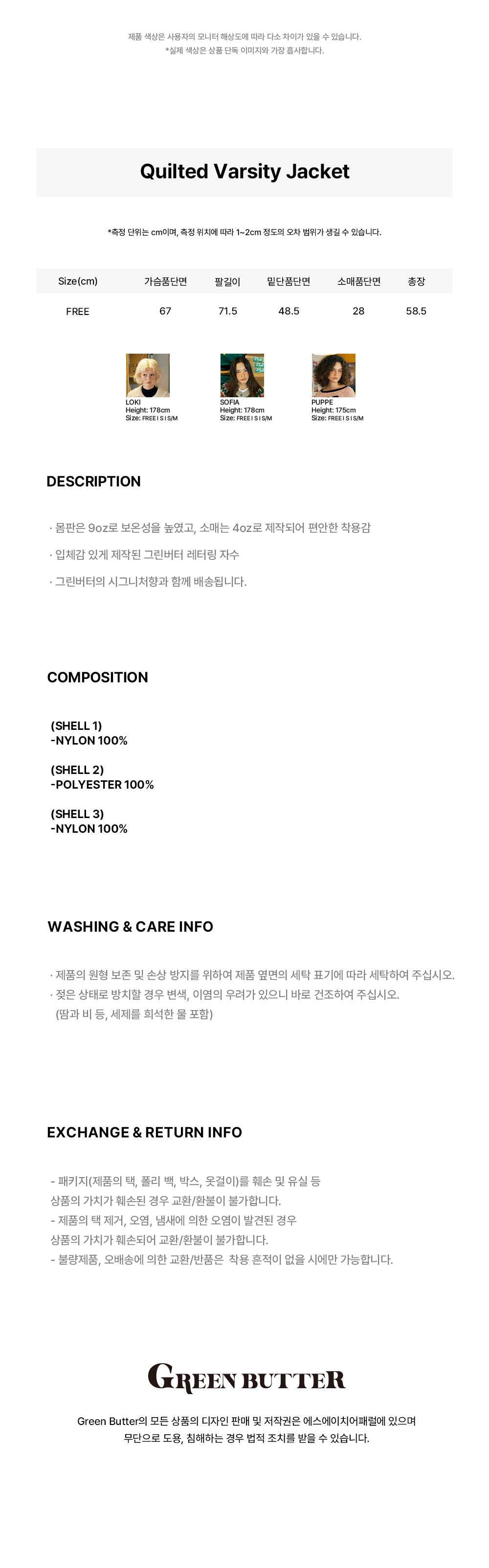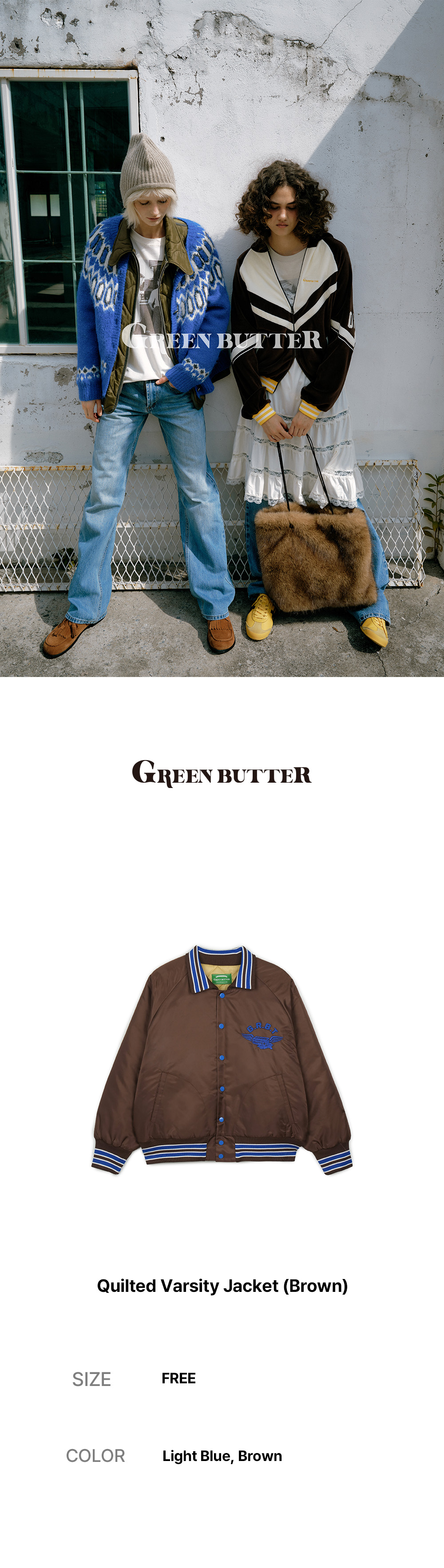 그린버터 퀼티드 바시티 자켓 브라운
