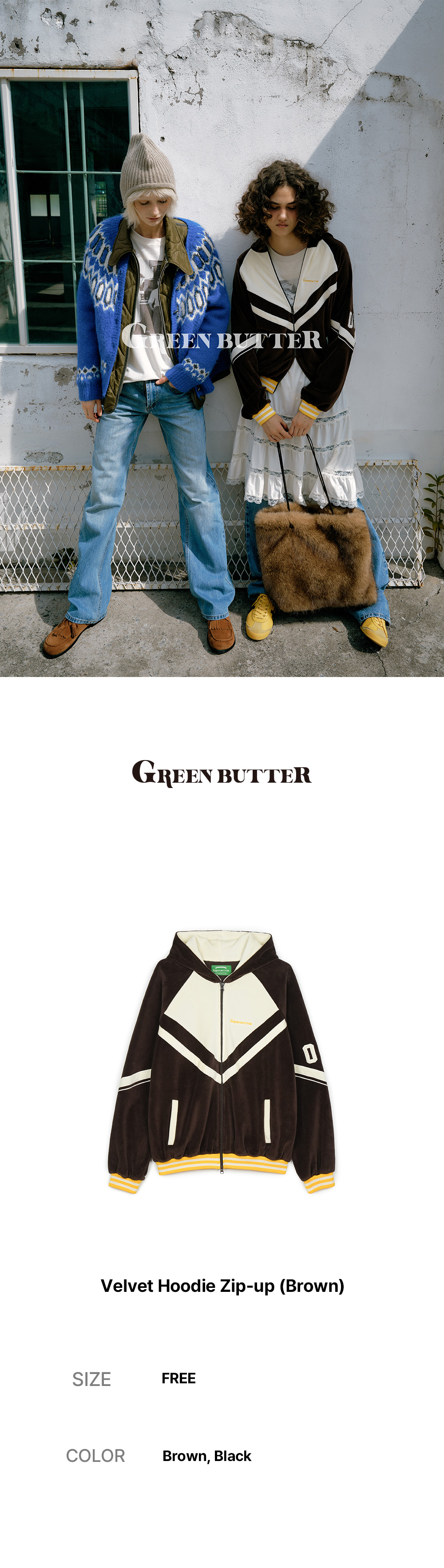 그린버터 벨벳 후드 집업 브라운