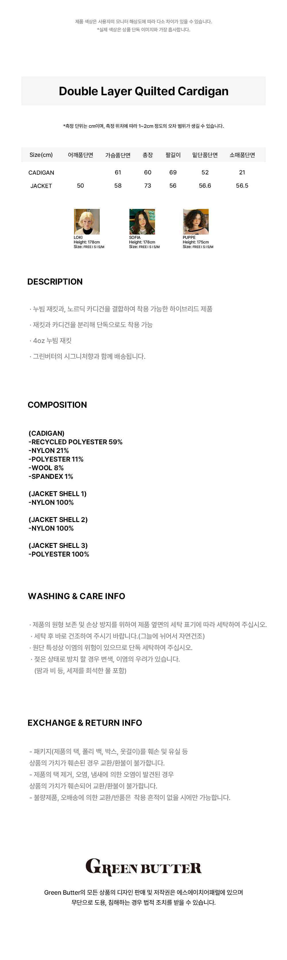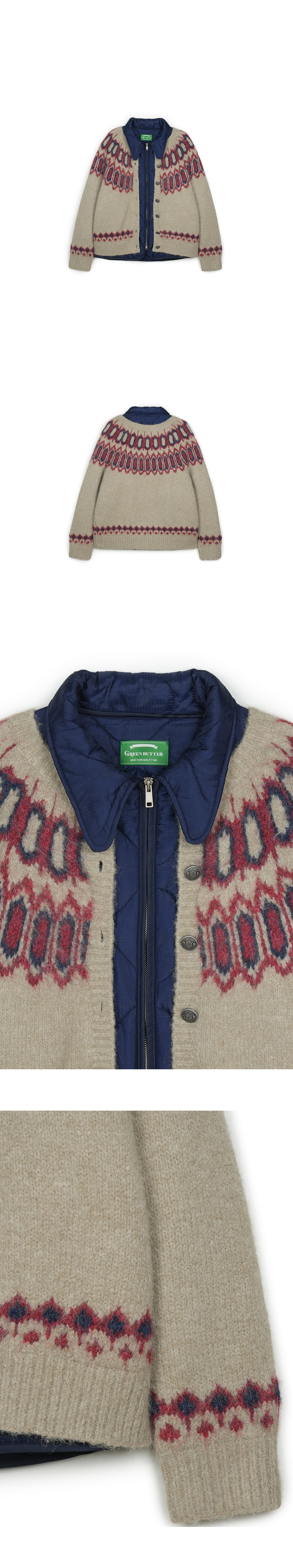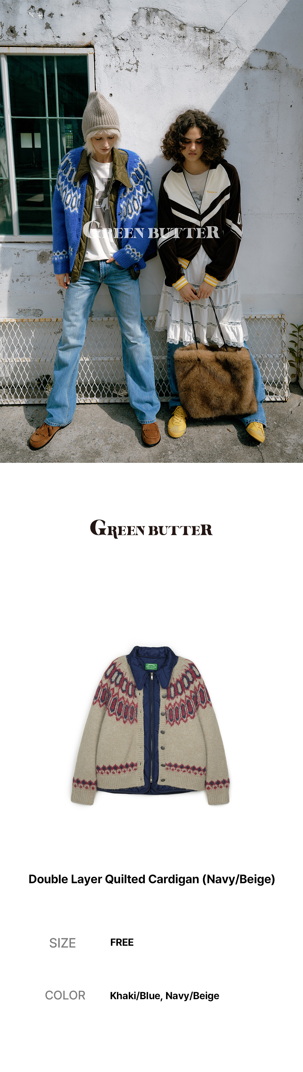 그린버터 더블 퀼티드 가디건 네이비/베이지
