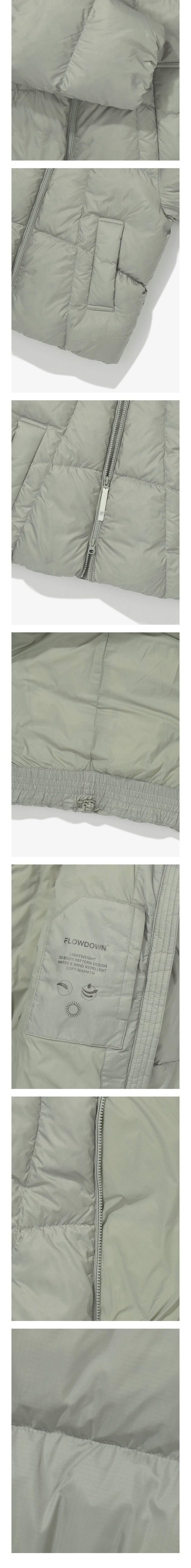 이번 시즌 주력 다운인 플로우 다운 입니다.은은한 광이 나는 소재를 사용하여 부담스럽지 않게 포인트를 주었습니다. 몸의 움직임을 고려한 입체 패턴 설계로 최적의 핏을 구현하여 다양한 야외 활동시 불편함이 없어 오래 입어도 불편함이 없습니다.지난 시즌 상품에서 기장을 2cm 더 길게 적용하여 착용시 더욱 편한 세미크롭 핏으로 연출 됩니다.BRN 컬러는 다른 컬러와 다른 소재로 더욱 글로시한 느낌입니다.