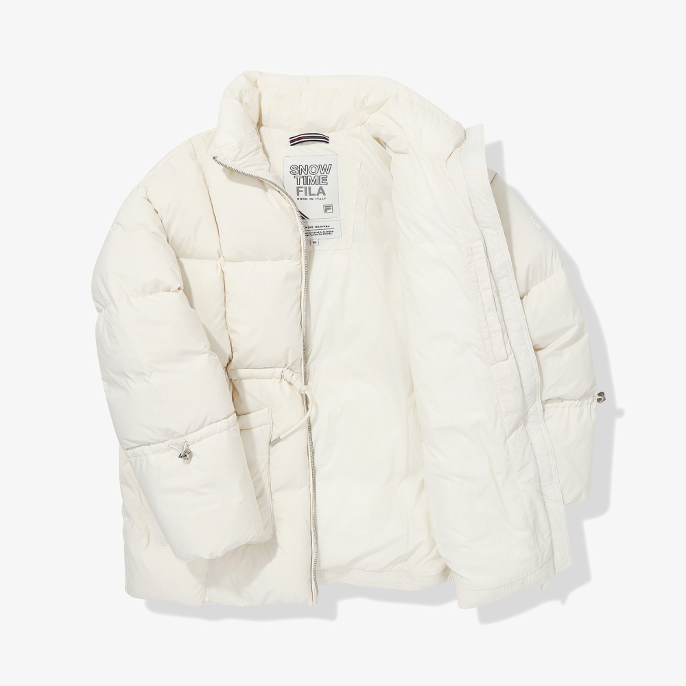 힙을 덮는 미드 기장의 여성전용 다운입니다.스커트, 팬츠 등 다양한 하의와 조화롭게 매칭되며허리라인에 스트링이 내장되어 있어편안한 실루엣과 슬림한 실루엣 두가지 방법으로 연출 가능합니다.프리미엄 유러피안 덕다운 충전재를 사용하여 착용시 가볍고 보온성 극대화 하였습니다.