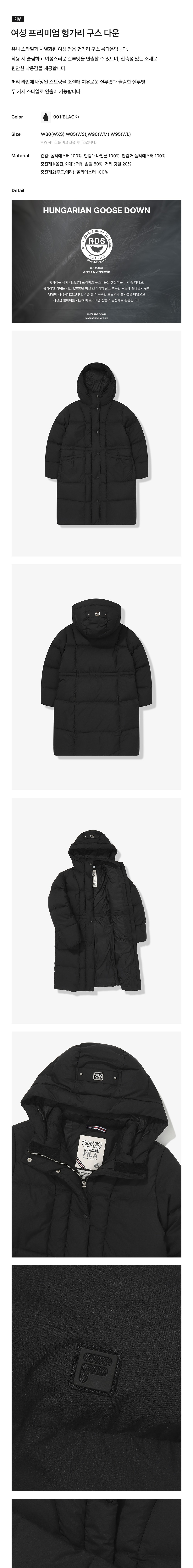 [6% 적립] 휠라 여성 프리미엄 헝가리 구스 다운 블랙