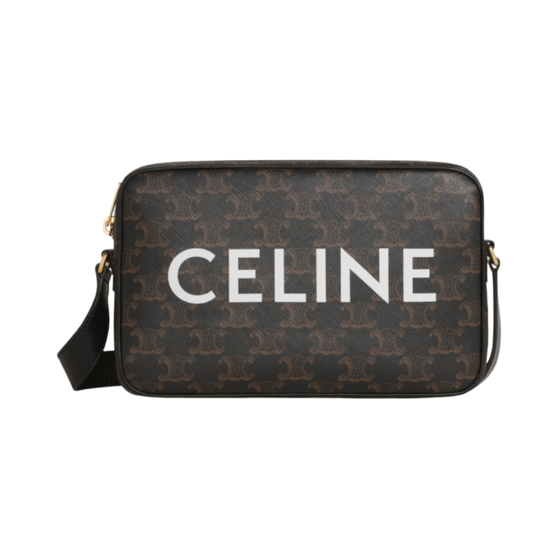 Celine Medium Messenger Bag in Triomphe Canvas with Celine Print Black