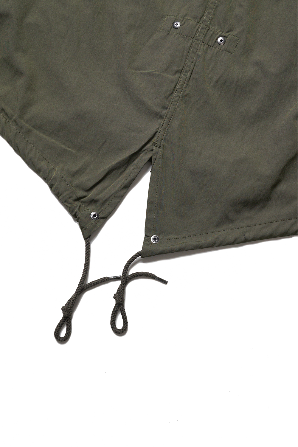 미육군의 65년형 혹한기 야전 파카를 현대적으로 어레인지한 아이템입니다. 쉘에는 속건성과 내구성이 우수한 'T/C Weather'를 사용하여 제작하였습니다. 스탠다드 타입의 카라의 뒷부분은 밀 스펙 태그를 디자인 하였으며, 우측 가슴에는 네임탭이 위치해 있습니다. 프론트 부분은 손잡이가 달린, IDEAL사의 지퍼를 채용 하였습니다. 소매는 입체감 있는 2겹 소매 사양으로 버튼 타입의 어드저스트로 핏 조절이 가능합니다. 양측에 스냅 버튼 타입의 플랩 포켓과 허리 부분은 조절 가능한 드로우 코드가 있으며, 밑단의 안쪽에는 피쉬테일을 수납할수 있는 스냅버튼이 있습니다. 라이너는 탈착이 가능하여 쉘과 라이너를 조합하여 3가지 타입으로 다양하게 활용 가능한 아이템입니다. * Shell : Cotton 65% / Polyester (T/C WEATHER) 35% * Other Cloth : 90%, 10% Wool * 빛에 의한 제품의 색감 차이가 존재 할 수 있습니다. * Made in China