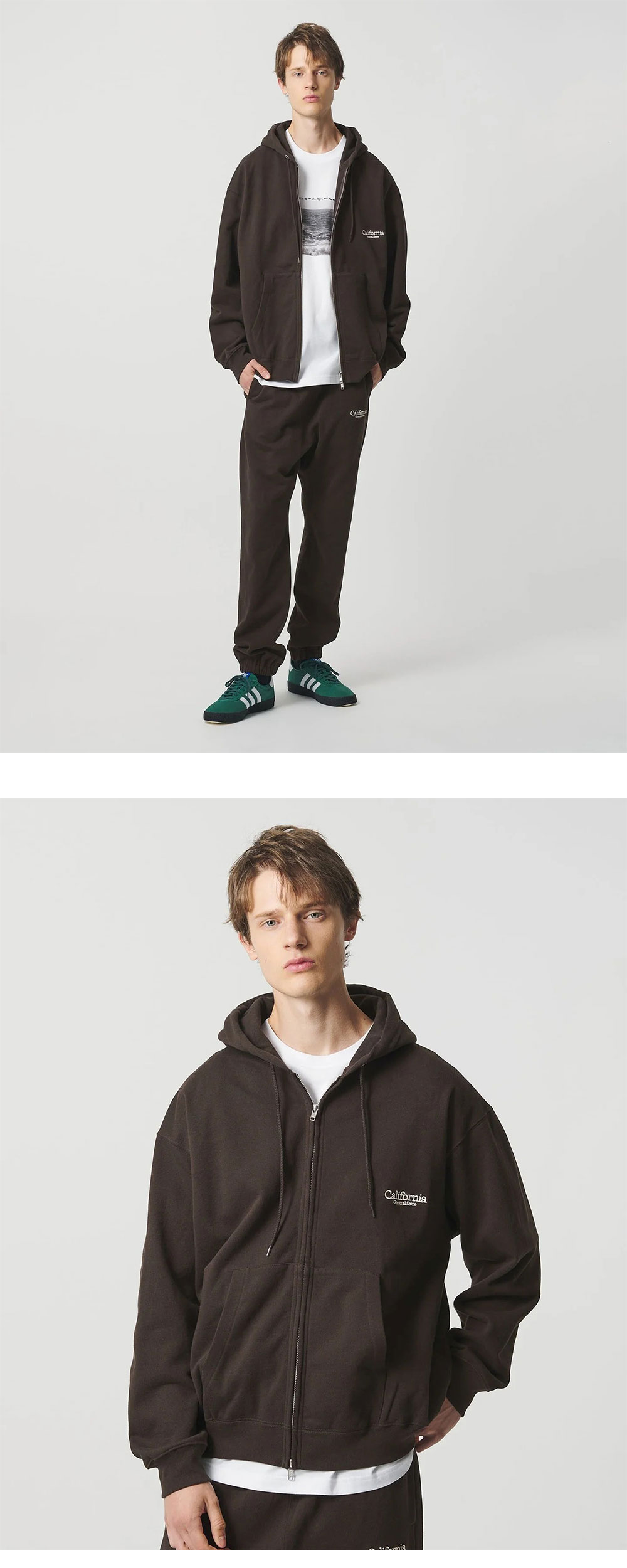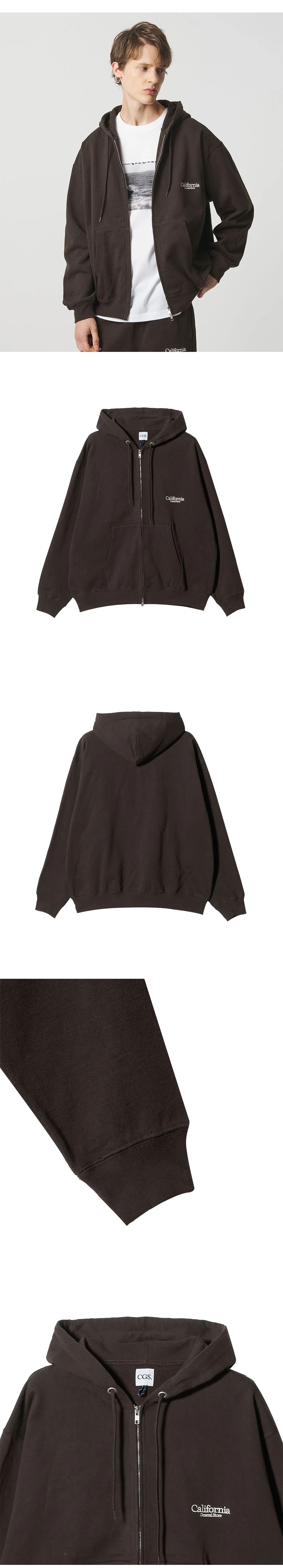 캘리포니아 제너럴 스토어 오가닉 스웨트 집 후디 다크 브라운입니다. - 오가닉 코튼 플러피 후드집업 - 볼륨 실루엣 - 안감 기모 처리 - 가슴 로고 자수 - 투웨이 지퍼