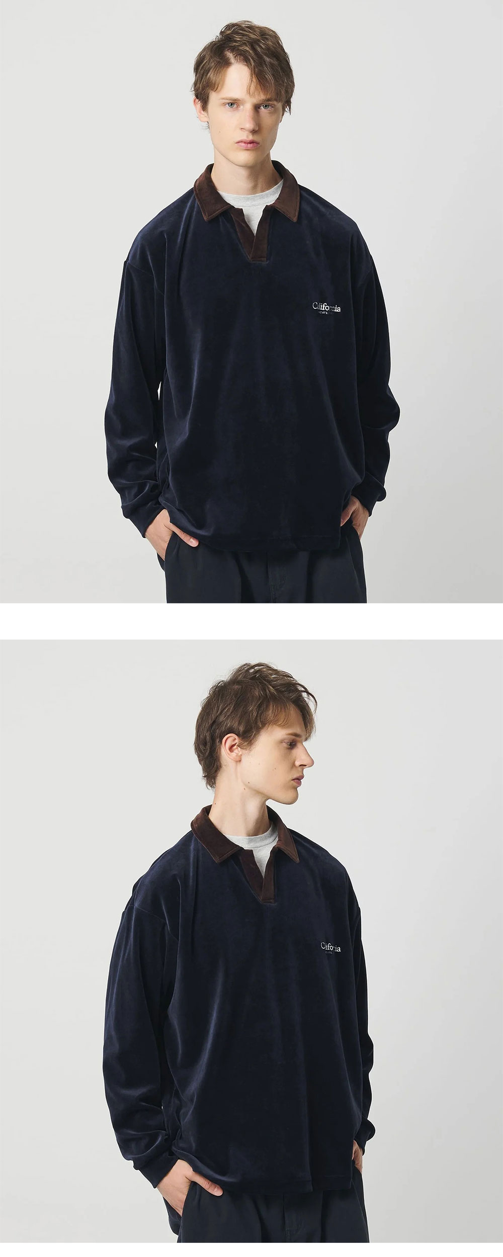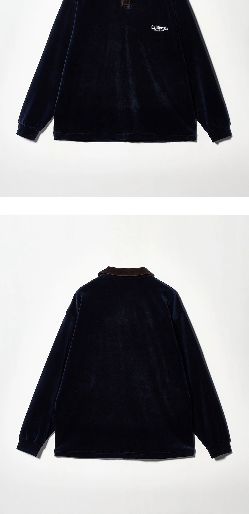 캘리포니아 제너럴 스토어 오가닉 코튼 벨루어 스키퍼 네이비입니다. - 오가닉 코튼 벨벳 소재의 스키퍼 폴로 셔츠 - 벨루어 특유의 은은한 광택과 부드러운 질감 - 배색 카라 디테일 - 전면 로고 자수 포인트 - 여유로운 오버핏 - 유니섹스 아이템