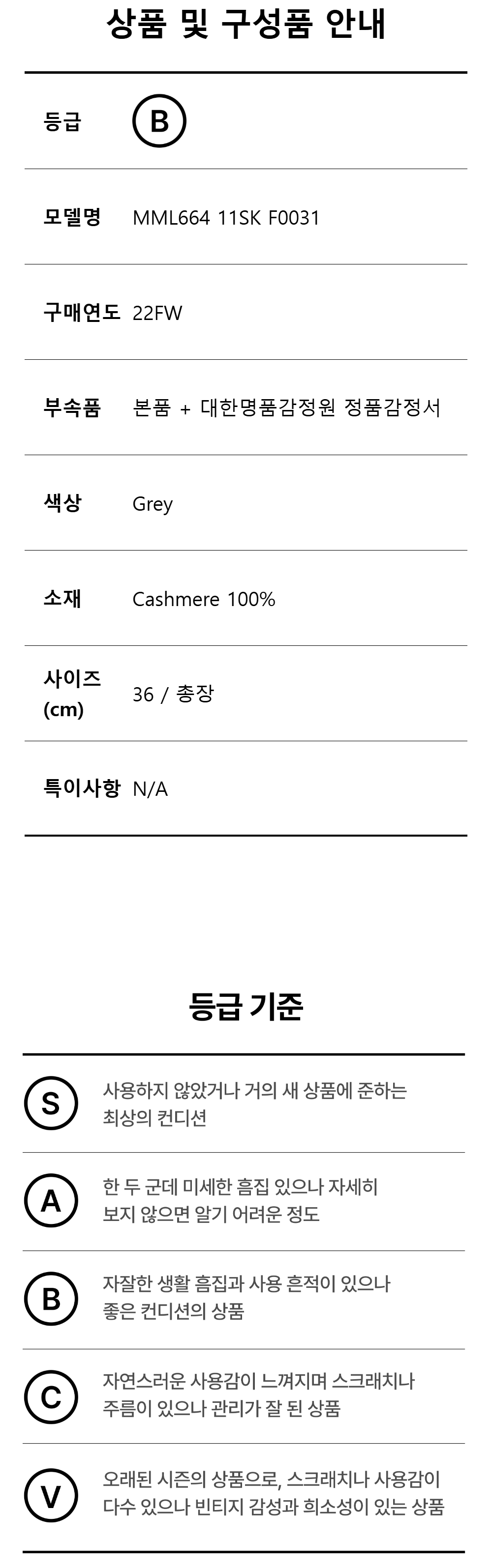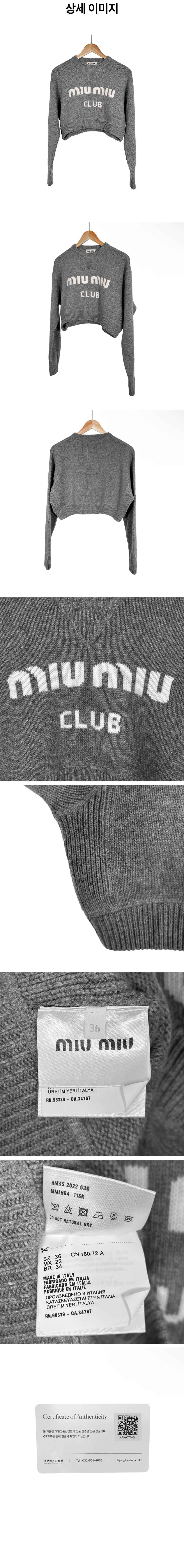 미우미우 여성 로고 캐시미어 크롭 니트 스웨터 그레이 36사이즈