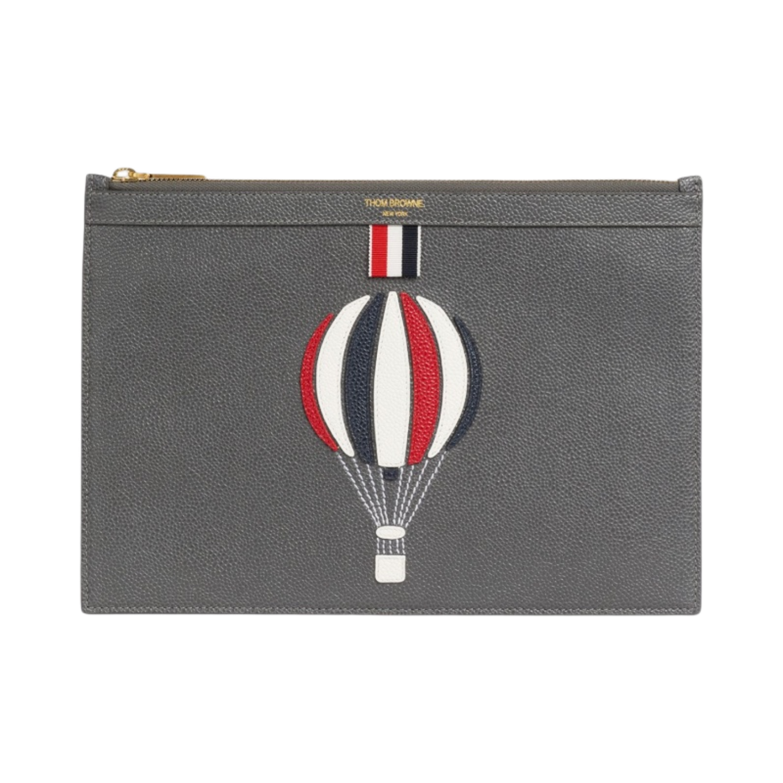 톰브라운 페블 그레인 레더 핫 에어 벌룬 아플리케 스몰 도큐먼트 홀더 다크 그레이