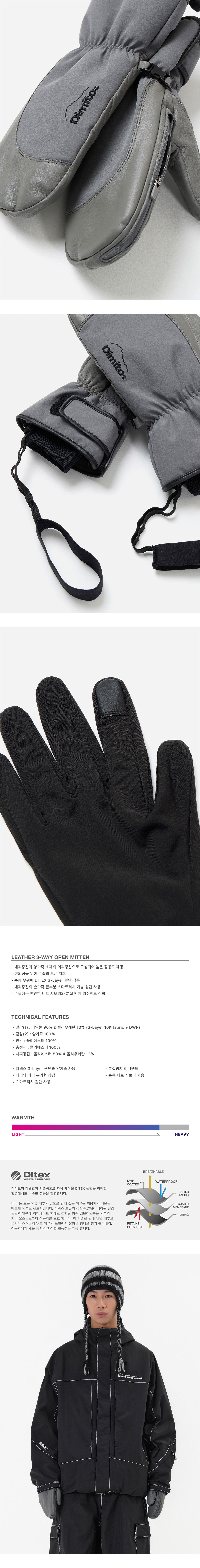디미토 레더 3-웨이 오픈 미튼 쿨 그레이