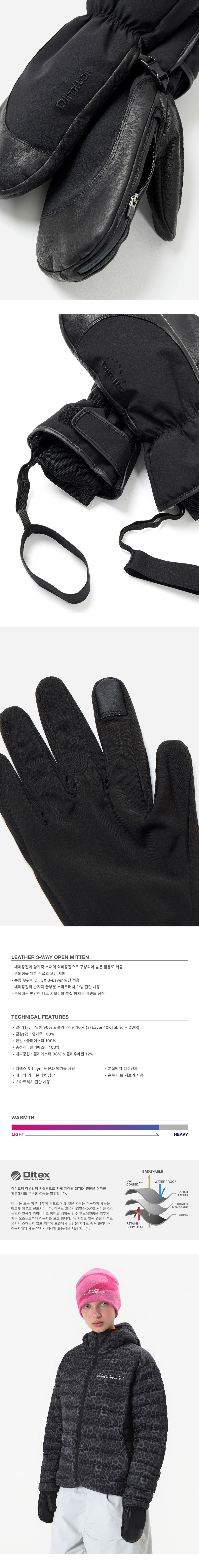 디미토 레더 3-웨이 오픈 미튼 블랙