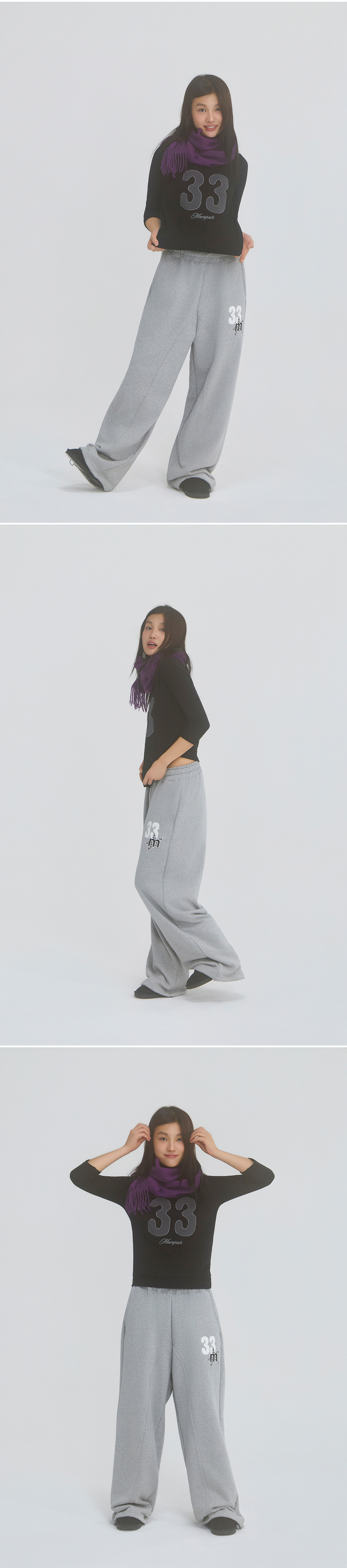 - 앞면 절개 라인 디테일로 구조적인 실루엣을 완성했습니다. - 밑단 투웨이 디자인으로 다양한 스타일링이 가능합니다. - 편안한 착용감으로 사계절 내내 활용할 수 있습니다. - 전면 33 그래픽과 M 아플리케로 브랜드 아이덴티티를 강조했습니다. - 데일리 웨어부터 트렌디한 캐주얼룩까지 폭넓게 연출 가능합니다.