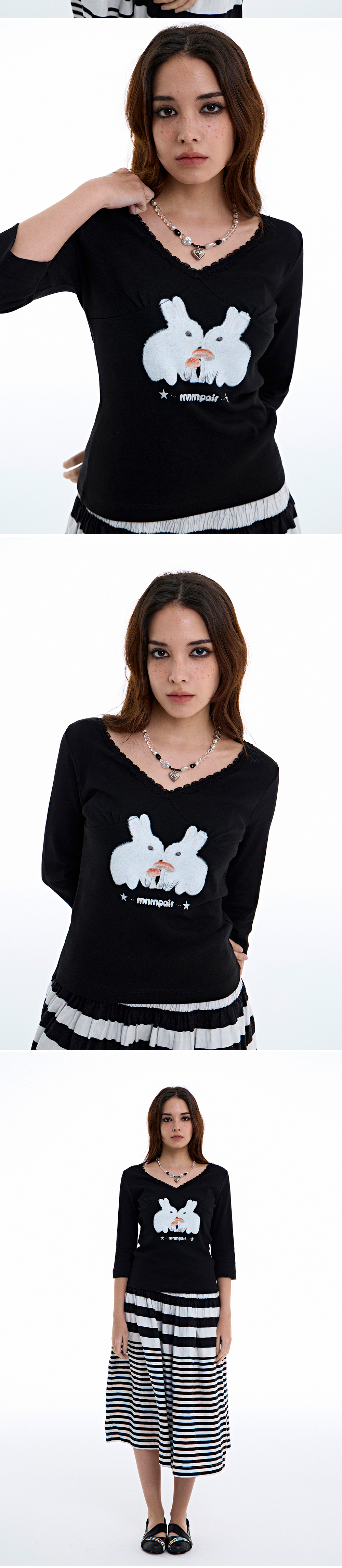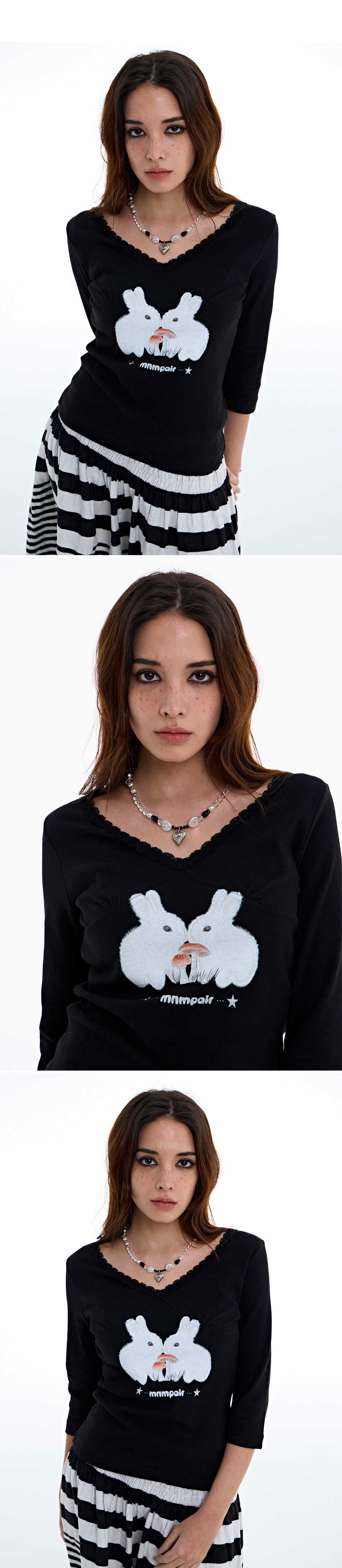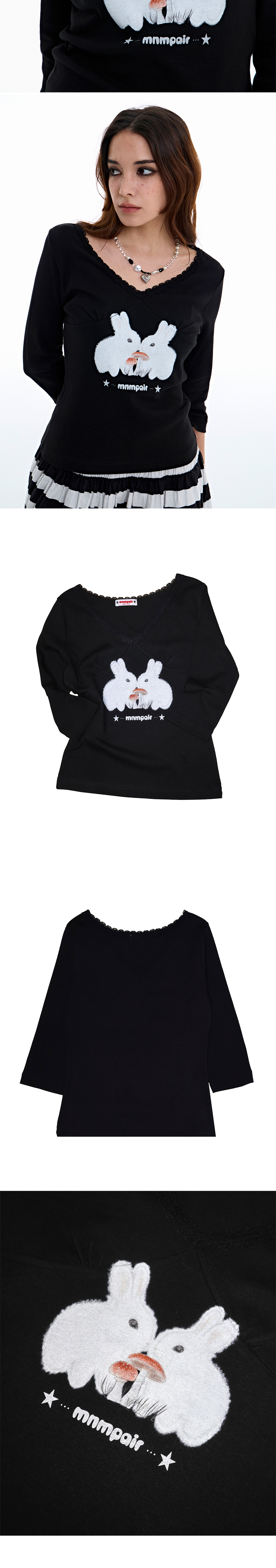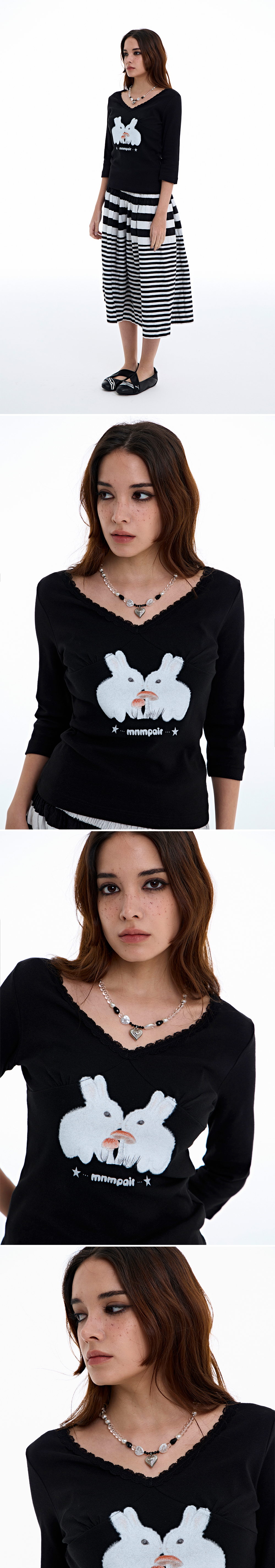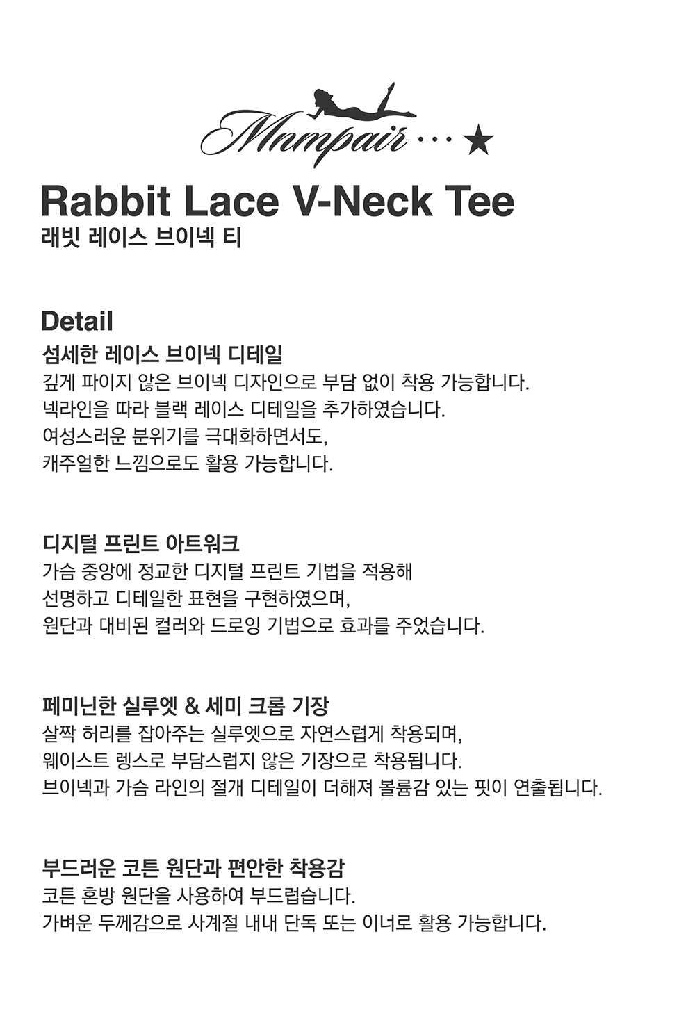 미니멀페어 래빗 레이스 브이넥 티셔츠 블랙