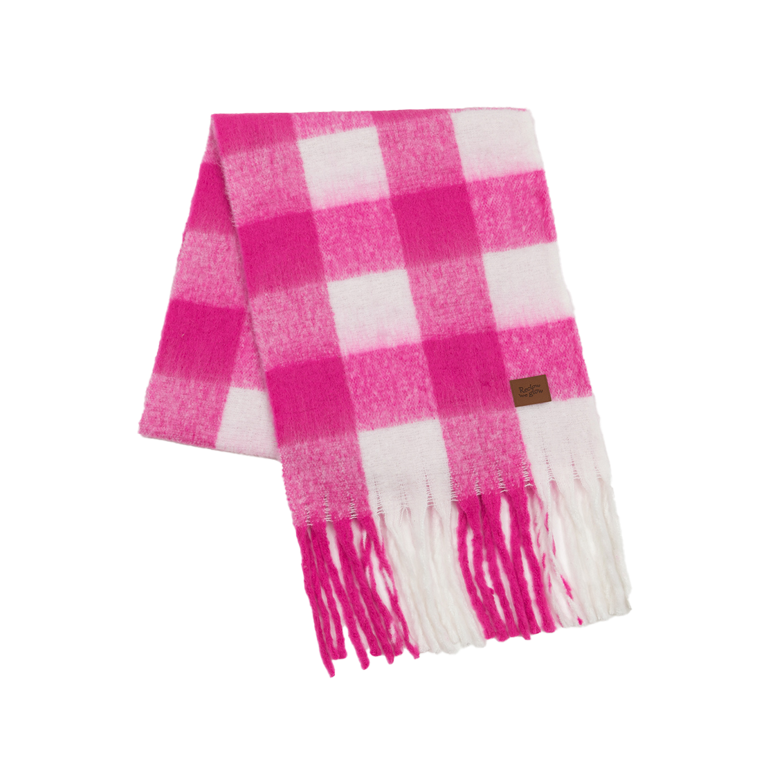 리끌로우 스노우 체크 머플러 핫 핑크