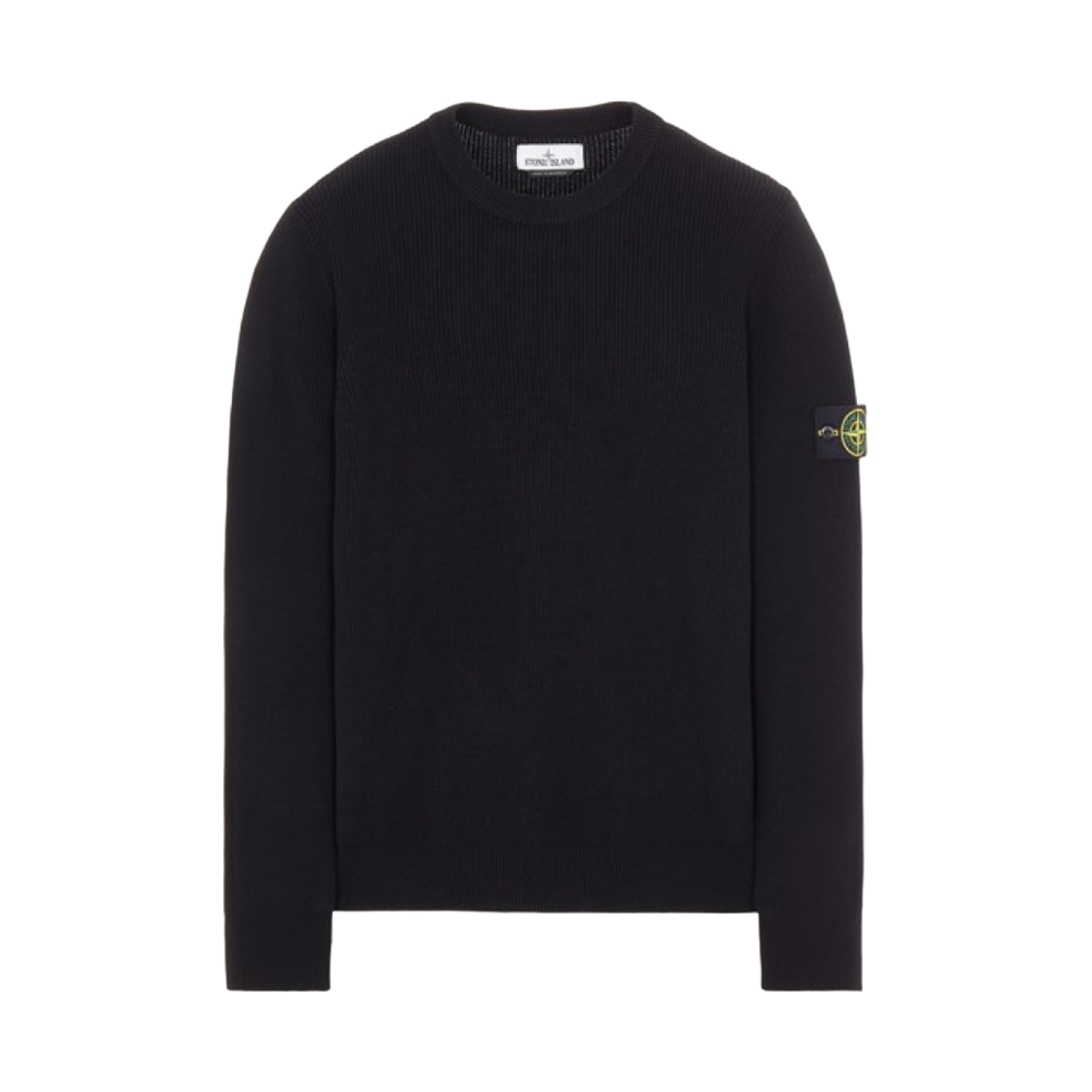 Stone Island 550D8 Ribbed Soft Cotton Crewneck Knit Black - 22SS