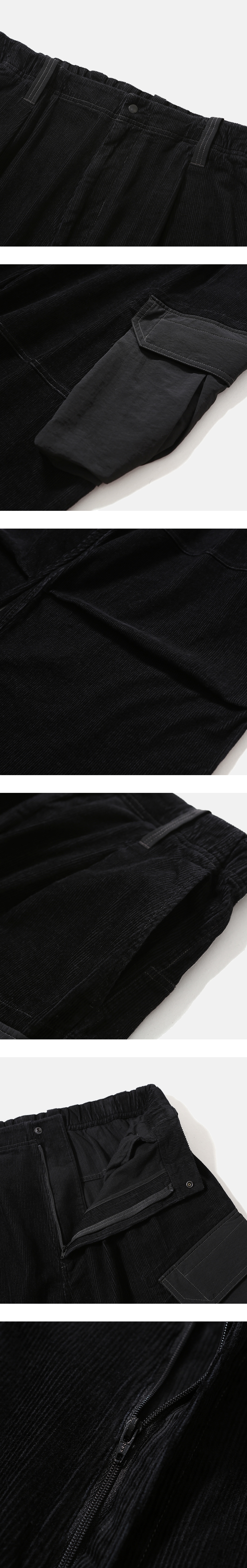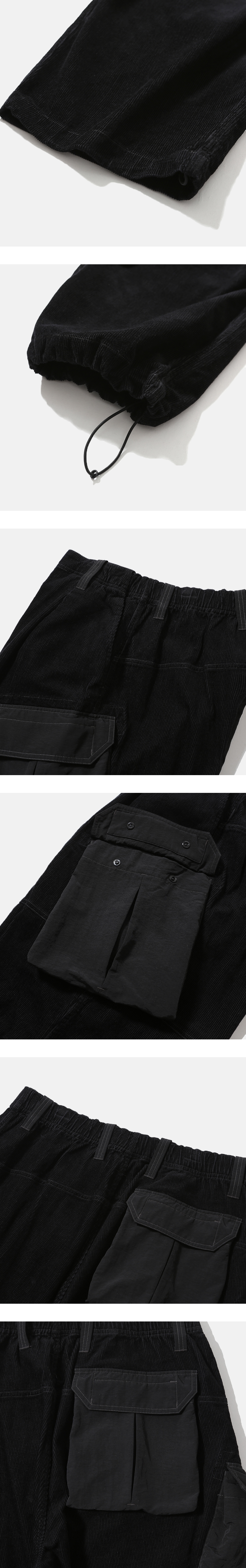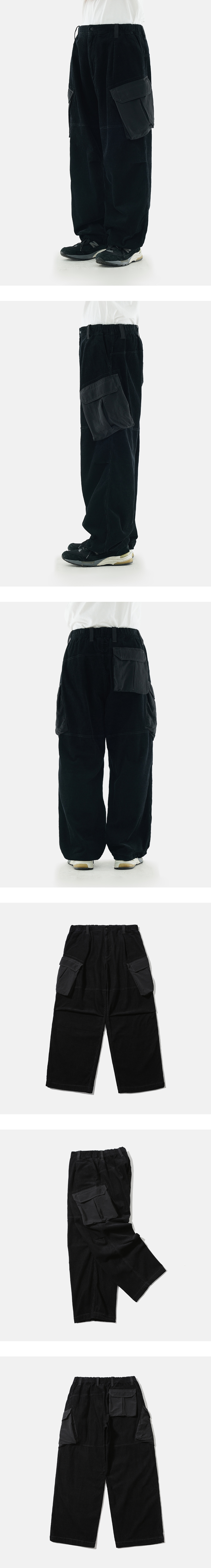 넉넉한 수납공간을 갖춘 밀리터리 팬츠 · 여유롭고 편안한 느낌의 실루엣. · 따뜻하고 부드러운 촉감의 코듀로이 원단 사용. · 스냅 여밈의 입체 분량이 있는 카고 포켓과 뒷 주머니 사양. · 오른쪽 사이드 주머니 내부에 열쇠 등을 걸 수 있는 고리 디테일. · 허리와 무릎에 턱을 넣어 편안한 착용감과 풍성한 실루엣 연출. · 신축성 있는 내장형 이밴드와 벨트 고리가 달린 허리. · 실루엣 조절이 가능한 밑단 스트링으로 2가지 타입으로 연출 가능.