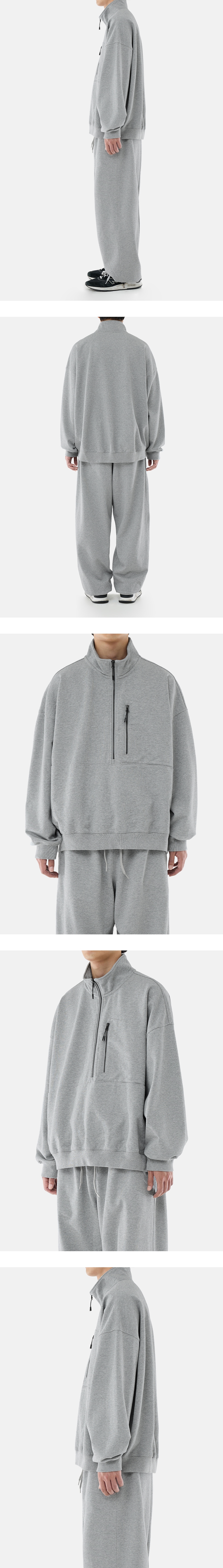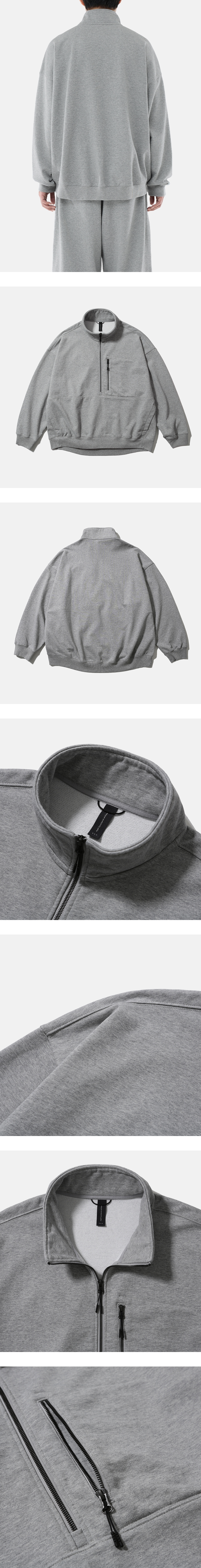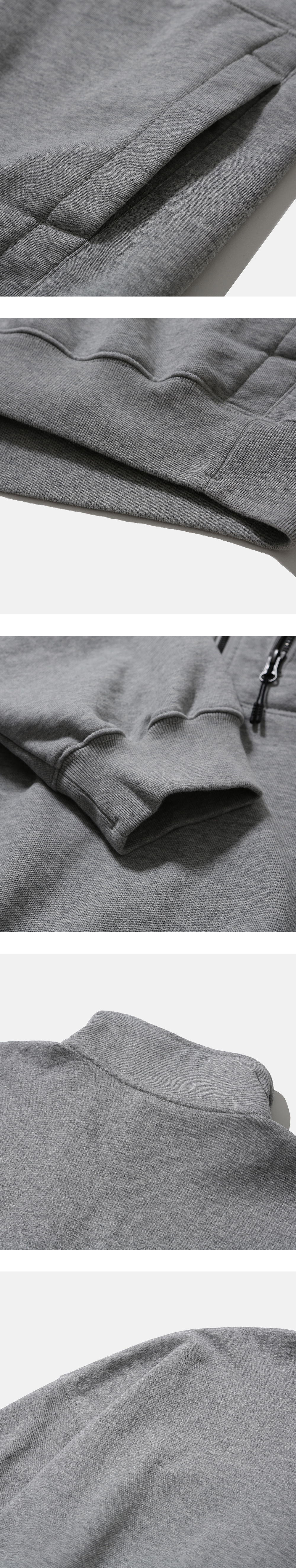 묵직한 중량의 부드러운 원단을 사용한 반 집업 스웻 셔츠 · 여유 있는 오버사이즈 실루엣. · 묵직한 중량의 부드러운 면/폴리에스테르 혼방 원단. · 겉면은 매끄럽고 안쪽은 루프로 이루어져 있는 테리 소재 사용. · 수축 방지 가공된 원단으로 세탁 후에도 변형이 적음. · 하프 지퍼 클로저 여밈과 스탠드 업 카라. · 지퍼 여밈의 가슴 주머니와 핸드 워머 포켓. · 편안한 착용감을 위해 손목 립 부분의 시접을 갈라서 처리.