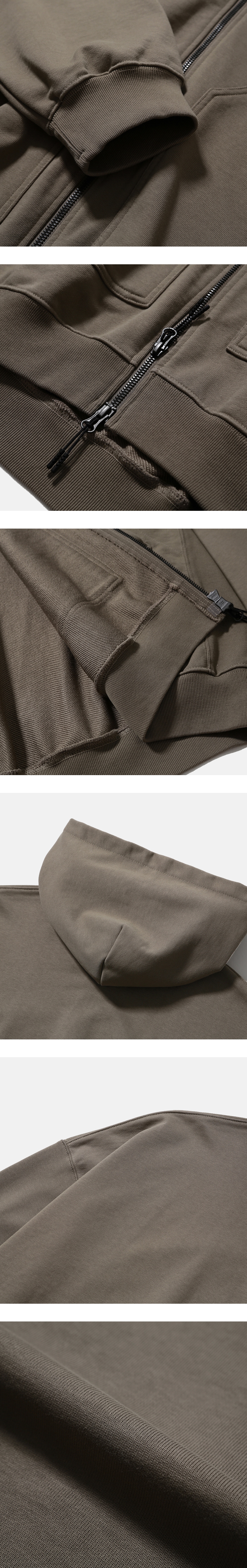 묵직한 중량의 부드러운 원단을 사용한 스웻 후디 · 여유 있는 오버사이즈 실루엣. · 묵직한 중량의 부드러운 면/폴리에스테르 혼방 원단. · 겉면은 매끄럽고 안쪽은 루프로 이루어져 있는 테리 소재 사용. · 수축 방지 가공된 원단으로 세탁 후에도 변형이 적음. · 2웨이 지퍼가 달려 있는 앞여밈 사양. · 넉넉한 크기의 사이드 패치 포켓. · 편안한 착용감을 위해 손목 립 부분의 시접을 갈라서 처리.