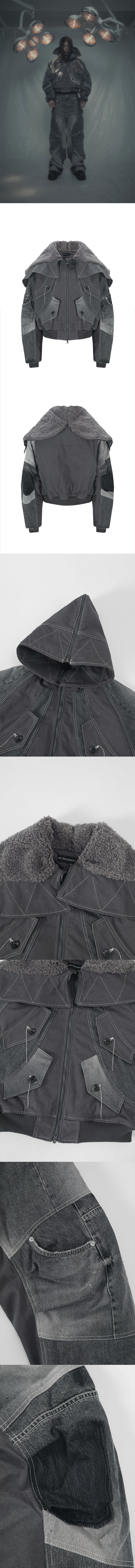 써저리 엑소-쉘 후드 데님 자켓 그레이