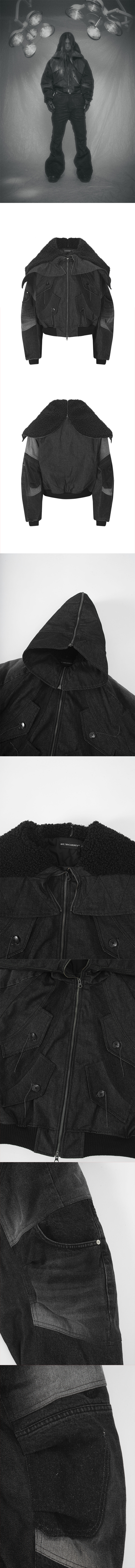 써저리 엑소-쉘 후드 데님 자켓 블랙