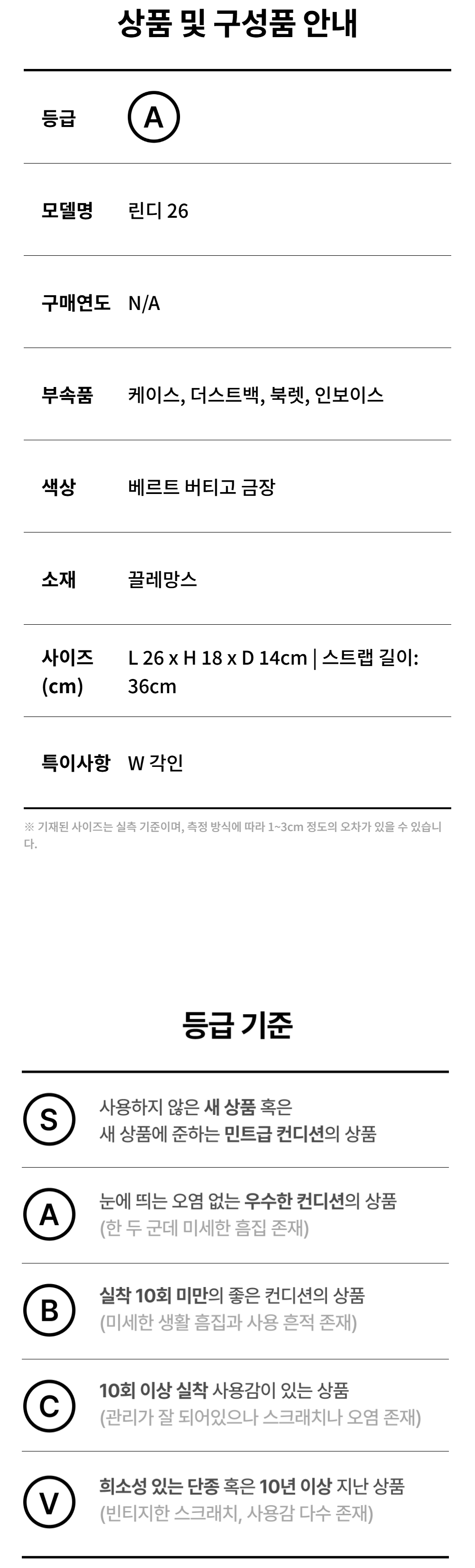 에르메스 린디 26 베르트 버티고 금장