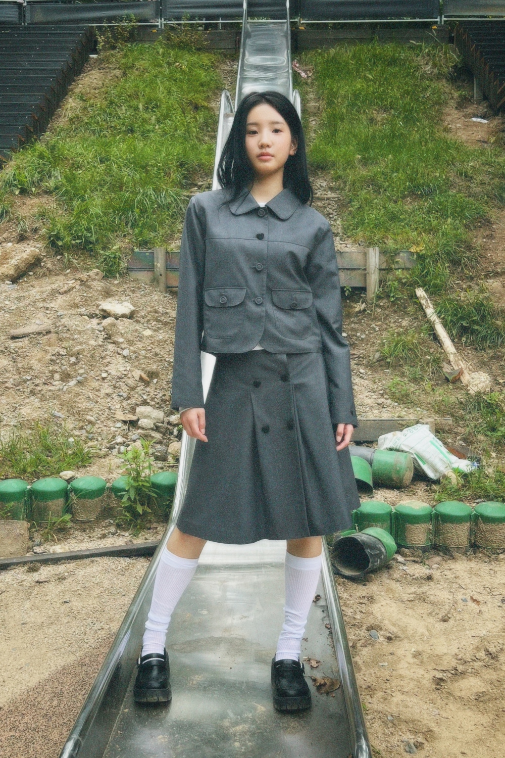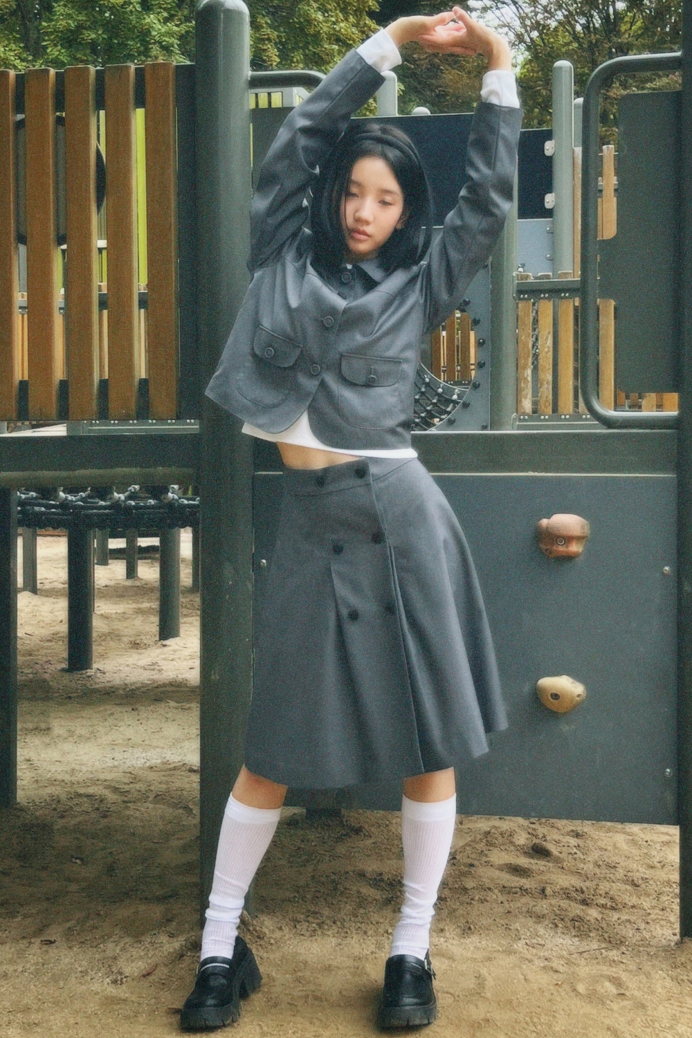 로긴 앤 로지 하트 더블 버튼 포인트 스커트 차콜