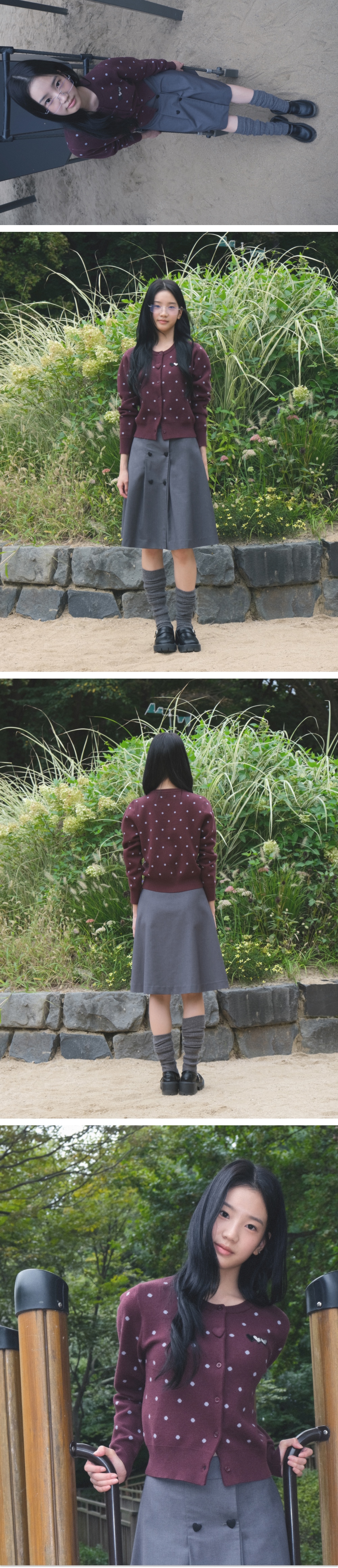 로긴 앤 로지 하트 와펜 버튼 포인트 가디건 플럼 브라운