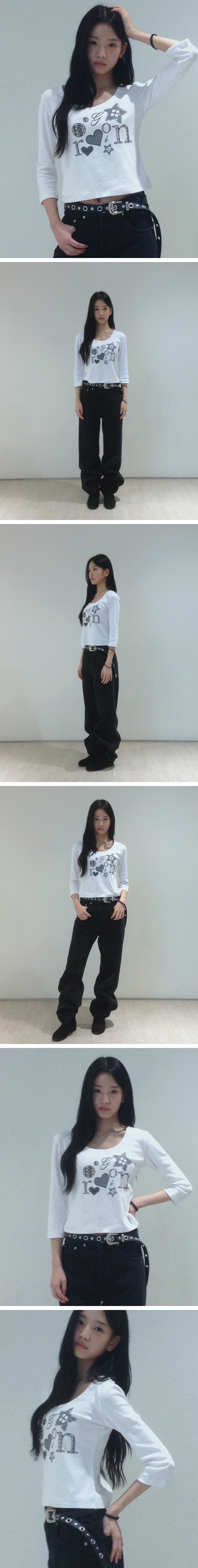 로긴 앤 로지 믹스드 모티프 프린티드 알앤알 롱슬리브 화이트