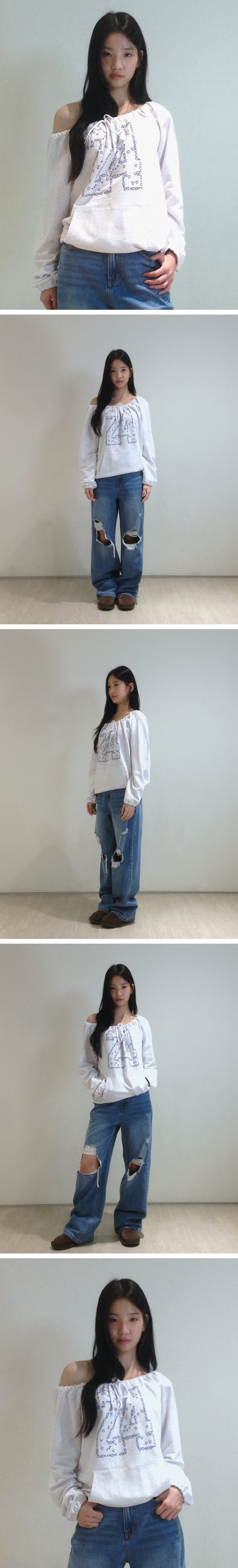 로긴 앤 로지 하트 넘버 스트링 롱슬리브 그레이