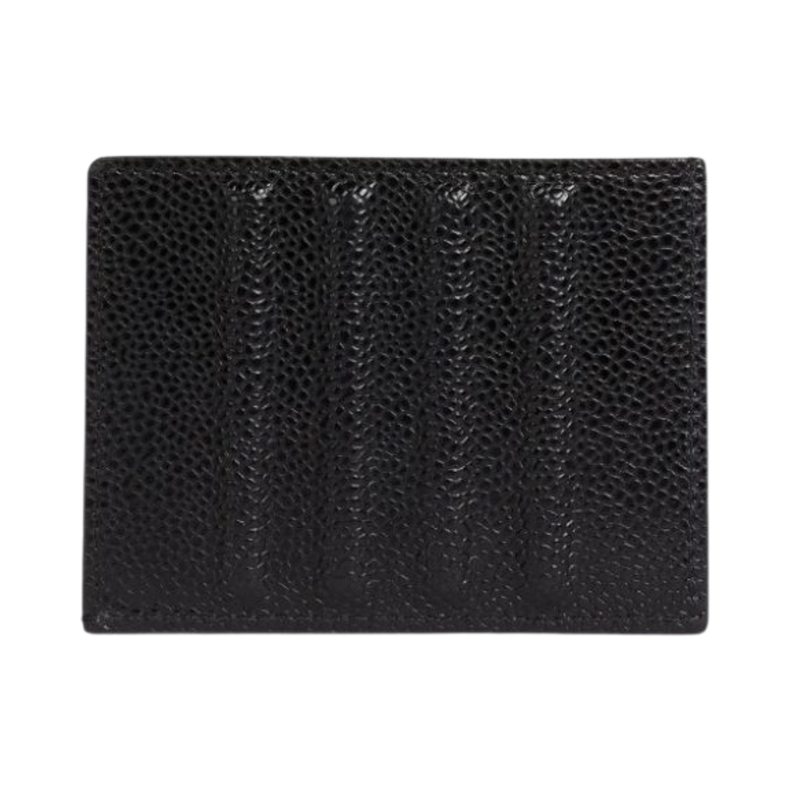 Thom Browne Pebble Grain Leather Debossed 4-Bar Note Compartment Card Holder Black