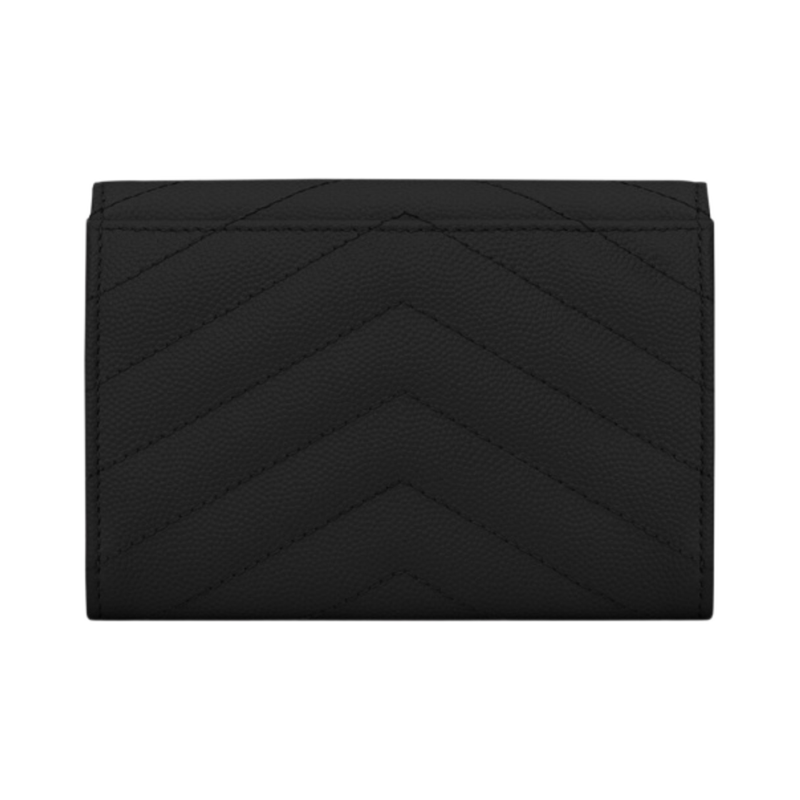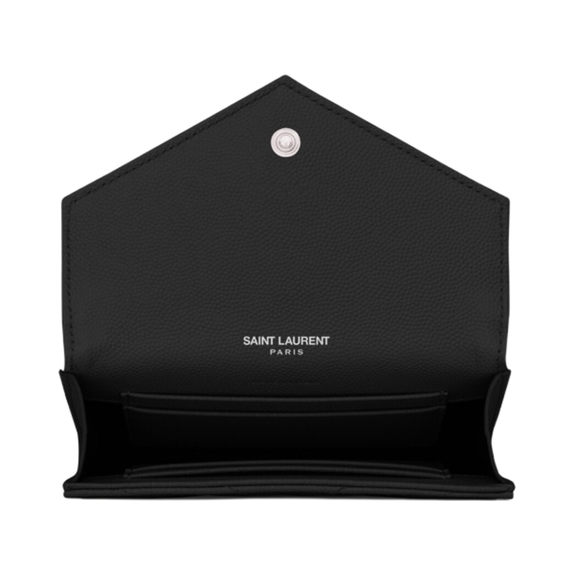 Saint Laurent Cassandre Matelasse Small Envelope Wallet in Grain de Poudre Embossed Leather Black Silver