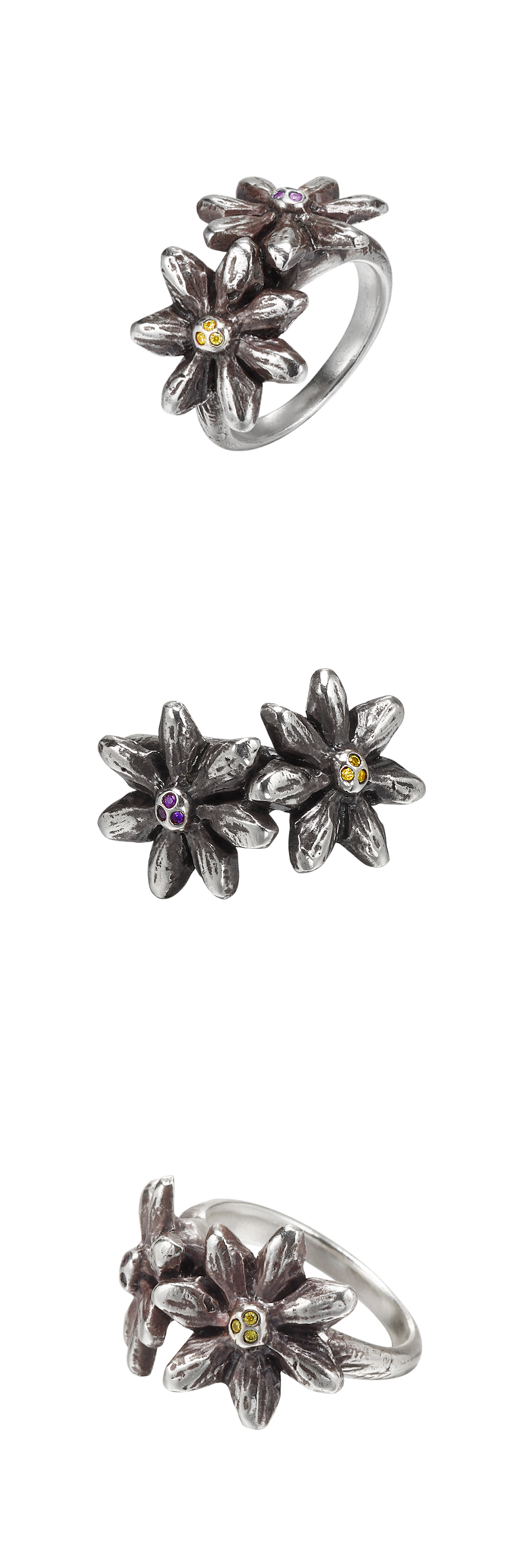 CH2P Double Flower Ring Silver