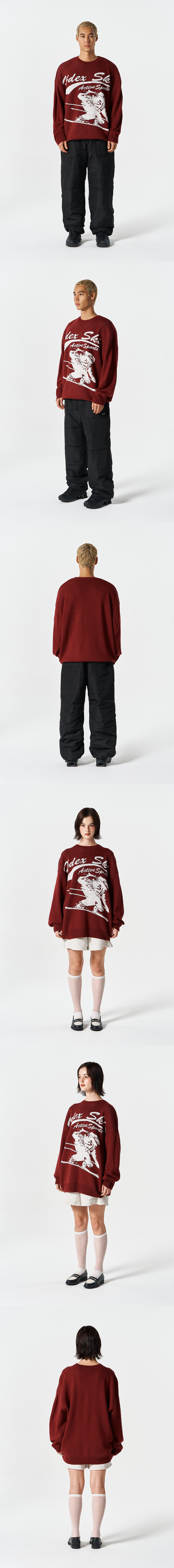 에이치덱스 오버핏 스키 니트 체리 레드