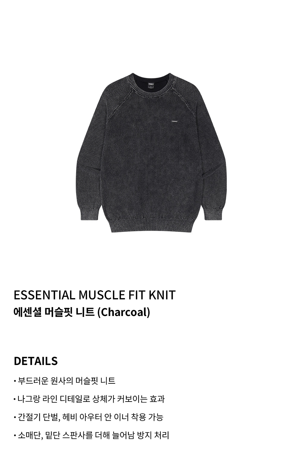 에이치덱스 에센셜 머슬핏 니트 차콜
